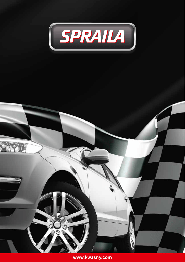 www.kwasny.com Podkład uniwersalny Podkład na plastik Uniwersalny podkład Spraila zapewnia solidne przygotowanie przed lakierowaniem przez gruntowanie wszystkich przedmiotów wykonanych z drewna, metalu, kamienia i szkła. Produkt tworzy gładką podstawę i dobrą przyczepność dla kolejnych wierzchnich warstw. Wiążący podkład do tworzyw sztucznych Spraila zwiększa przyczepność następnej powłoki farby do większości powierzchni wykonanych z tworzyw sztucznych, np. spojlerów, plastikowych lusterek bocznych i plastikowych zderzaków. 300 900 300 055 czarny (500 ml) 300 901 szary (500 ml) 300 902 (500 ml) czerwony 300 903 biały (500 ml) (400 ml) transparentny srebrny Podkład antykorozyjny Lakier do zderzaków Gruntujący podkład antykorozyjny Spraila jest aktywną ochroną przed powstawaniem rdzy na gołych powierzchniach metalowych. Cynkowy produkt bez chromianu jest wysoce odporny na powstawanie korozji i może być stosowany jako podkład spawalniczy. Może być aplikowany również na powierzchniach cynkowych i aluminiowych. Szybkoschnąca mieszanka farby do tworzyw sztucznych Spraila została stworzona na bazie specjalnej kombinacji farb do lakierowania części plastikowych. Dzięki temu wszystkie części samochodowe wykonane z twardego tworzywa sztucznego, poliestru i poliwęglanu mogą być odnowione. Może być stosowany na plastikowych zderzakach, lusterkach bocznych, spojlerach itp. Jako podkład, podkład na plastik Spraila gwarantuje idealną powierzchnię. 300 049 szary (400 ml) 300 050 czarny (400 ml) 300 052 biały (400 ml) 300 058 (400 ml) czerwonobrązowy 300 094 Cynk w sprayu Podkład Spraila zinc rich jest bardzo skutecznym podkładem, który został opracowany jako podkład ochronny powierzchni metalowych przed powstawaniem korozji. Wysoka zawartość cynku dostarcza długoterminowe uszczelnienie i gwarantuje wysoki poziom ochrony przed korozją nawet w temperaturze powyżej 400°C. Produkt ten doskonale nadaje się do wszystkich części samochodowych, które nie muszą zostać wykończone lakierem nawierzchniowym jak np. rury systemów wydechowych, połączenia spawów, ocynkowane części i wnętrza karoserii pojazdów. 300 054 szary 300 095 (400 ml) ciemnoszary 300 096 (400 ml) antracyt 300 097 czarny (400 ml) Lakier żaroodporny Wysokoodporna farba na temperaturę Spraila idealnie nadaje się do użytku domowego i części samochodowych narażonych na wysokie obciążenia termiczne, takie jak np. rury wydechowe, grille ogrodowe, kotły i kominki. Produkt jest bardzo odporny na ciepło do 300°C lub 650°C, trwały i odporny na warunki atmosferyczne. (400 ml) 300 030 Alu Cynk w sprayu Produkt cynkowo-aluminiowy w aerozolu Spraila jest idealnym zabezpieczeniem antykorozyjnym dla powierzchni narażonych na działanie wody, warunków atmosferycznych i do naprawy uszkodzonych powierzchni cynkowych. Może być stosowany na instalacjach grzewczych, rurach, konstrukcjach stalowych, grzejnikach, poręczach oraz powlekanych wewnętrznych krawędziach blach podczas zgrzewania punktowego. 300 057 (400 ml) jasnoszary srebrny 650°C (400 ml) 300 041 czarny 650°C (400 ml) 300 047 (400 ml) czerwony 300°C Lakier transparentny Transparentna farba Spraila utrzymująca kolor na obiektach, na których faktura powierzchni powinna być nadal widoczna, jak szkło, przezroczyste elementy z tworzyw sztucznych, lampy, przedmioty z drewna, metalu, tworzyw sztucznych, itp. (niedozwolona w stosowaniu na elementach pojazdów w rozumieniu ustawy o ruchu drogowym). (400 ml) srebrno-szary 300 115 Chrom efekt (400 ml) czerwony Szybkoschnąca o doskonałej wydajności farba akrylowa Spraila dająca efekt chromu, która wyróżnia się dzięki bardzo dobrym właściwościom kryjącym, wysokiej odporności na światło i temperaturę. Farba nadaje pokrytym powierzchniom gładką metaliczną powłokę podobną do efektu chromu. Jest częściowo odporna na warunki atmosferyczne, jednakże nie jest odporna na ścieranie. Nie pokrywać lakierem bezbarwnym! 300 023 (400 ml) srebrno-szary 300 117 czarny (400 ml) Pół produkt (Fill In) 300 299 (400 ml) prefilled Aerozol do napełniania Spraila jest wstępnie napełniony gazem pędnym i innymi dodatkami. Produkt końcowy osiąga się przez dodanie farby. Specjalistyczny sklep ponosi odpowiedzialność, za jakość końcową produktu. Lakier samochodowy w aerozolu Lakier do felg Uniwersalne farby w aerozolu Spraila są idealne do malowania elementów dekoracyjnych na samochodach i jako powłoka ochronna elementów w domu i ogrodzie. Szybkoschnące farby, bardzo ekonomiczne, odporne na zarysowania i warunki atmosferyczne. Gama farb w aerozolu Spraila obejmuje szereg standardowych odcieni kolorów. Farba do felg Spraila przeznaczona jest do lakierowania felg samochodowych, jest odporna na ścieranie i warunki panujące w myjniach samochodowych. Produkt posiada doskonałe właściwości kryjące i jest odporny na działanie soli drogowej, odpryski itp. Ponadto, poza standardowymi odcieniami kolorów oferowany jest również lakier bezbarwny do felg Spraila. 300 905 (500 ml) 300 921 (500 ml) 300 937 (500 ml) 300 938 (500 ml) 300 904 (500 ml) 300 940 (500 ml) 300 946 (500 ml) 300 953 (500 ml) czarny połysk biały połysk czarny mat 300 961 (500 ml) czarny półpołysk kryształowe srebro biały mat biały złoty 300 939 czarny (500 ml) 300 945 (500 ml) tytanowe srebro bezbarwny połysk Lakier do zacisków hamulcowych Lakier bezbarwny Farba do zacisków hamulcowych Spraila umożliwia szybkie wyeksponowanie widocznych części hamulców. Zaciski hamulcowe i inne części wyraźnie kontrastujące z felgami; zmieniają wygląd pojazdów nadając im bardziej sportowy wygląd. Lakier bezbarwny Spraila jest szybkoschnącym lakierem do długotrwałego uszczelnienia obiektów wykonanych z metalu, drewna, kamienia, szkła, ceramiki, gliny, papieru, większości tworzyw sztucznych i/lub do przemalowania przedmiotów uprzednio pokrytych lakierami w aeroz