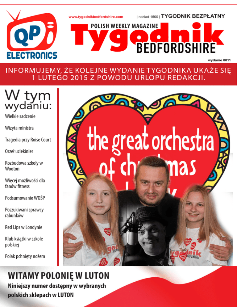 www.tygodnikbedfordshire.com | nakład 1500 | TYGODNIK BEZPŁATNY POLISH WEEKLY MAGAZINE wydanie 0011 INFORMUJEMY, ŻE KOLEJNE WYDANIE TYGODNIKA UKAŻE SIĘ 1 LUTEGO 2015 Z POWODU URLOPU REDAKCJI. W tym wydaniu: Wielkie sadzenie Wizyta ministra Tragedia przy Roise Court Orzeł uciekinier Rozbudowa szkoły w Wooton Więcej możliwości dla fanów fitness Podsumowanie WOŚP Poszukiwani sprawcy rabunków Red Lips w Londynie Klub książki w szkole polskiej Polak pchnięty nożem WITAMY POLONIĘ W LUTON Niniejszy numer dostępny w wybranych polskich sklepach w LUTON 2015 18 stycznia Bedford TYGODNIK | Bedfordshire |1 Zbliża się wielkie sadzenie Ciepłe ubrania, sporo entuzjazmu, trochę czasu i dobre chęci – tyle wystarczy, by... zasadzić las. Forest of Marston Vale Trust zaprasza na sadzenie drzewek 8 lutego. Zbliża się wielka impreza na terenach leśnych (czy raczej przyszłych terenach leśnych) Forest of Marston Vale. Wszyscy wielbiciele natury mogą wziąć udział w sadzeniu drzewek, które odbędzie się już 8 lutego pomiędzy godz. 11 a 15.00. Organizator – Forest of Marston Vale Trust – zapewnia drzewka, narzędzie, instrukcje, a nawet filiżankę ciepłej herbaty. Wystarczy przyjść do centrum leśnego i poświęcić trochę czasu. Sadzenie drzewek może się wydawać wyczerpującą i trudną czynnością. Nic bardziej mylnego! Sadzonki są bardzo małe, więc zasadzenie jednej roślinki zajmuje tylko kilka minut. Organizatorzy zachęcają, by przychodzić całymi rodzinami, a może jakieś pary miałyby ochotę w taki niecodzienny sposób świętować nadchodzące Walentynki. Wszystkie tereny leśne Forest of Marston Vale są ogólnodostępne. Będzie więc możliwość, by w przyszłości podziwiać „swoje” drzewko we wzrastającym lesie. Leśnicy ostrzegają jednak, by odpowiednio się ubrać. Jest zima, więc może być mokro i zimno. Jeśli ktoś będzie potrzebował pomocy w dotarciu na miejsce, proszony jest o wcześniejszy kontakt z Forest of Marston Vale Trust. Ponieważ w pobliżu strefy sadzenia drzewek nie ma żadnego parkingu, będzie można dojechać z Forest Centre darmowym autobusem. Będzie on kursować pomiędzy godz. 10.15 a 14.15. Jeśli natomiast praca z sadzonkami zaostrzy apetyty ochotników, będzie można zjeść lunch lub kupić ciastko i herbatę za okazyjną cenę 3 funtów (ale tylko po wcześniejszym zasadzeniu drzewka). Więcej informacji na temat imprezy znajduje się na stronie: marstonvale.org. Za Bedfordshire on Sunday A.M. Wizyta ministra Minister rozwoju gospodarki Greg Clark odwiedził ostatnio Bedford, by rozmawiać o przyszłości ekonomicznej miasta. Głównym powodem przyjazdu ministra do Bedford było oficjalne podpisanie porozumienia o rozwoju lokalnym (Local Growth Deal). Na mocy umowy miasto otrzyma fundusze, aby zakończyć budowę obwodnicy zachodniej. Przy okazji wizyty w naszym regionie, Clark spotkał się z lokalnym członkiem Parlamentu – Richardem Fullerem oraz konserwatywnym kandydatem na burmistrza Jasem Parmarem. Ich rozmowa dotyczyła m.in. kolejnych ambitnych planów dotyczących regionu – budowy nowego mostu nad rzeką Great Ouse w Batt’s Ford. MP Fuller przyznał, że jest zachwycony, że w ostatnich miesiącach rząd przyznał fundusze na kilka bardzo ważnych projektów w samym Bedford i okolicach, włączając w to kolej pomiędzy Bedford i Oxford, wiadukt na skrzyżowaniu Black Cat z A1 oraz właśnie ukończenie zachodniej obwodnicy. 2 | Bedfordshire | TYGODNIK Bez konsekwencji wobec policjanta Policjant skłonił niepełnosprawnego umysłowo do przyznania się do wykroczenia, którego ten nie popełnił. Funkcjonariusz Cliff Kaile nie poniesie konsekwencji, mimo iż przełożeni uznali jego winę. W czerwcu ubiegłego roku Wayne’a Smitha odwiedził policjant Przybył w sprawie wypadku, w którym udział brał jego pojazd i samochód kierowany przez inną kobietę. Między kierującymi doszło do ostrej sprzeczki. Do zdarzenia doszło 11 dni przed wizytą funkcjonariusza. Pan Smith poinformował, że samochód prowadziła jego partnerka, Rebecca Bashlawi. Funkcjonariusz Cliff Kaine nalegał, aby pan Smith podpisał formularz, w którym przyznaje się do winy i wyraża swoje ubolewanie z powodu zajścia. Miało to być zeznanie w ramach tak zwanej sprawiedliwości naprawczej. Jej istotą jest takie prowadzenie spraw, które uwzględnia potrzeby poszkodowanych i ofiar. Mniej ważne w takim postępowaniu są pryncypia prawne, uznane za abstrakcyjne, czy samo dążenie do ukarania sprawcy. Podpisanie formularza z przeprosinami miało zakończyć sprawę. Partnerka pana Smitha była wówczas nieobecna, jednak zadzwoniła do niej córka, informując o wizycie policjanta. Według niej mężczyzna próbował przekonać stróża prawa, że to nie on kierował pojazdem. Ten jednak mówił że wszystko jest w porządku i cała sprawa się wyjaśni jak tylko pan Smith podpisze formularz. Według pani Bashlawi, jej partner cierpi na zaburzenia umysłowe, które uniemożliwiają mu podejmowanie codziennych decyzji. Domaga się odwołania podpisanego zeznania, gdyż rzekomy sprawca jest niewinny. Pani Bashlawi napisała skargę do przełożonego funkcjonariusza Kaile’a. Jakkolwiek przyznano jej rację, że słuszne są zastrzeżenia co do sposoby postępowania funkcjonariusza, to zastosowane wobec niego zostanie upomnienie przez przełożonego. Zdaniem rzecznika policji, w momencie, kiedy funkcjonariusz Kaile dowiedział się, że to partnerko rzekomego sprawcy brała udział w zajściu, powinien przerwać działania. Dopiero wyjaśnienie udziału pani Bashlawi w zajściu pozwoliłoby na ustalenie przebiegu wypadków. Naleganie na podpisanie formularza było, zdaniem rzecznika, pomyłką ze strony policjanta. Rzecznik poinformował, że wobec funkcjonariusza podjęto “odpowiednie działania”, które mają zapewnić lepsze zrozumienie procesów sprawiedliwości naprawczej i zapobiec pomyłkom w przysz