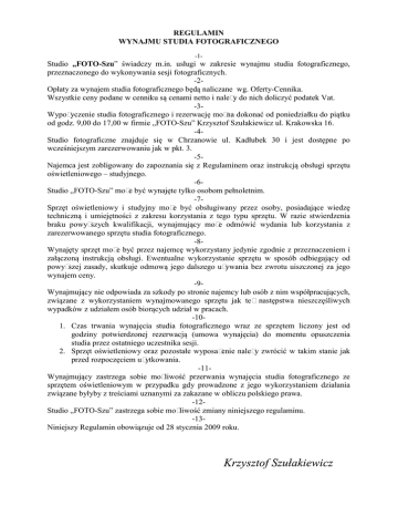 REGULAMIN WYNAJMU STUDIA - FOTO-Szu