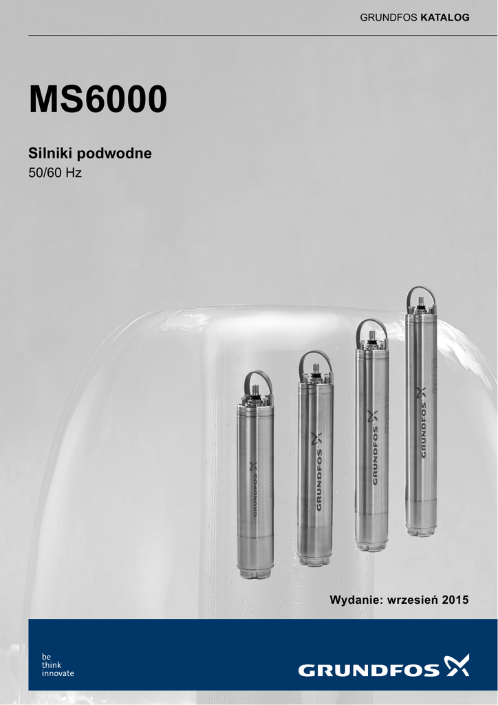 GRUNDFOS KATALOG MS6000 Silniki podwodne 50/60 Hz Wydanie: wrzesień 2015 MS6000 Spis treści 1. Opis produktu 4 Zalety i korzyści . . . . . . . . . . . . . . . . . . . . . . . . . . . . . . . . . . . . . . . . . . . . . . . . . . . . . . . . . . . . . . . . . . . . . . . . . . . . . . . 5 Zastosowania. . . . . . . . . . . . . . . . . . . . . . . . . . . . . . . . . . . . . . . . . . . . . . . . . . . . . . . . . . . . . . . . . . . . . . . . . . . . . . . . . 5 2. Oznaczenia 6 Klucz oznaczeń typu . . . . . . . . . . . . . . . . . . . . . . . . . . . . . . . . . . . . . . . . . . . . . . . . . . . . . . . . . . . . . . . . . . . . . . . . . . . 6 3. 4. Warunki pracy 7 Tłoczone ciecze . . . . . . . . . . . . . . . . . . . . . . . . . . . . . . . . . . . . . . . . . . . . . . . . . . . . . . . . . . . . . . . . . . . . . . . . . . . . . . . Ciśnienie otoczenia . . . . . . . . . . . . . . . . . . . . . . . . . . . . . . . . . . . . . . . . . . . . . . . . . . . . . . . . . . . . . . . . . . . . . . . . . . . . Chłodzenie . . . . . . . . . . . . . . . . . . . . . . . . . . . . . . . . . . . . . . . . . . . . . . . . . . . . . . . . . . . . . . . . . . . . . . . . . . . . . . . . . . . Częstotliwość załączania i wyłączania. . . . . . . . . . . . . . . . . . . . . . . . . . . . . . . . . . . . . . . . . . . . . . . . . . . . . . . . . . . . . . 7 7 7 7 Montaż 8 Montaż mechaniczny . . . . . . . . . . . . . . . . . . . . . . . . . . . . . . . . . . . . . . . . . . . . . . . . . . . . . . . . . . . . . . . . . . . . . . . . . . . 8 Podłączenie elektryczne . . . . . . . . . . . . . . . . . . . . . . . . . . . . . . . . . . . . . . . . . . . . . . . . . . . . . . . . . . . . . . . . . . . . . . . . 9 5. 6. 7. 8. 9. Budowa 11 Specyfikacja materiałowa . . . . . . . . . . . . . . . . . . . . . . . . . . . . . . . . . . . . . . . . . . . . . . . . . . . . . . . . . . . . . . . . . . . . . . MS 6000 - rysunek złożeniowy . . . . . . . . . . . . . . . . . . . . . . . . . . . . . . . . . . . . . . . . . . . . . . . . . . . . . . . . . . . . . . . . . . MS6000F (z przedłużonym kołnierzem) - rysunek złożeniowy . . . . . . . . . . . . . . . . . . . . . . . . . . . . . . . . . . . . . . . . . . Budowa . . . . . . . . . . . . . . . . . . . . . . . . . . . . . . . . . . . . . . . . . . . . . . . . . . . . . . . . . . . . . . . . . . . . . . . . . . . . . . . . . . . . 11 12 13 14 Dane techniczne 17 MS6000 . . . . . . . . . . . . . . . . . . . . . . . . . . . . . . . . . . . . . . . . . . . . . . . . . . . . . . . . . . . . . . . . . . . . . . . . . . . . . . . . . . . . MS6000 z przedłużonym kołnierzem . . . . . . . . . . . . . . . . . . . . . . . . . . . . . . . . . . . . . . . . . . . . . . . . . . . . . . . . . . . . . . Kable silnika. . . . . . . . . . . . . . . . . . . . . . . . . . . . . . . . . . . . . . . . . . . . . . . . . . . . . . . . . . . . . . . . . . . . . . . . . . . . . . . . . Numery katalogowe kabli silnikowych . . . . . . . . . . . . . . . . . . . . . . . . . . . . . . . . . . . . . . . . . . . . . . . . . . . . . . . . . . . . . 17 17 18 19 Dane elektryczne 20 Przegląd. . . . . . . . . . . . . . . . . . . . . . . . . . . . . . . . . . . . . . . . . . . . . . . . . . . . . . . . . . . . . . . . . . . . . . . . . . . . . . . . . . . . Kod oznaczenia napięcia 10, 60 . . . . . . . . . . . . . . . . . . . . . . . . . . . . . . . . . . . . . . . . . . . . . . . . . . . . . . . . . . . . . . . . . Kod oznaczenia napięcia 08 . . . . . . . . . . . . . . . . . . . . . . . . . . . . . . . . . . . . . . . . . . . . . . . . . . . . . . . . . . . . . . . . . . . . Kod oznaczenia napięcia 19, 69, 35 . . . . . . . . . . . . . . . . . . . . . . . . . . . . . . . . . . . . . . . . . . . . . . . . . . . . . . . . . . . . . . Kod oznaczenia napięcia 09, 63 . . . . . . . . . . . . . . . . . . . . . . . . . . . . . . . . . . . . . . . . . . . . . . . . . . . . . . . . . . . . . . . . . Kod oznaczenia napięcia 18, 69, 35 . . . . . . . . . . . . . . . . . . . . . . . . . . . . . . . . . . . . . . . . . . . . . . . . . . . . . . . . . . . . . . Kod oznaczenia napięcia 18 . . . . . . . . . . . . . . . . . . . . . . . . . . . . . . . . . . . . . . . . . . . . . . . . . . . . . . . . . . . . . . . . . . . . Kod oznaczenia napięcia 64 . . . . . . . . . . . . . . . . . . . . . . . . . . . . . . . . . . . . . . . . . . . . . . . . . . . . . . . . . . . . . . . . . . . . Kod oznaczenia napięcia 28, 80, 30 . . . . . . . . . . . . . . . . . . . . . . . . . . . . . . . . . . . . . . . . . . . . . . . . . . . . . . . . . . . . . . Kod oznaczenia napięcia 33, 83 . . . . . . . . . . . . . . . . . . . . . . . . . . . . . . . . . . . . . . . . . . . . . . . . . . . . . . . . . . . . . . . . . Kod oznaczenia napięcia 08 . . . . . . . . . . . . . . . . . . . . . . . . . . . . . . . . . . . . . . . . . . . . . . . . . . . . . . . . . . . . . . . . . . . . Kod oznaczenia napięcia 19, 69, 35 . . . . . . . . . . . . . . . . . . . . . . . . . . . . . . . . . . . . . . . . . . . . . . . . . . . . . . . . . . . . . . Kod oznaczenia napięcia 18, 39 . . . . . . . . . . . . . . . . . . . . . . . . . . . . . . . . . . . . . . . . . . . . . . . . . . . . . . . . . . . . . . . . . Kod oznaczenia napięcia 09, 63 . . . . . . . . . . . . . . . . . . . . . . . . . . . . . . . . . . . . . . . . . . . . . . . . . . . . . . . . . . . . . . . . . Kod oznaczenia napięcia 64 . . . . . . . . . . . . . . . . . . . . . . . . . . . . . . . . . . . . . . . . . . . . . . . . . . . . . . . . . . . . . . . . . . . . Kod oznaczenia napięcia 19, 69 . . . . . . . . . . . . . . . . . . . . . . . . . . . . . . . . . . . . . . . . . . . . . . . . . . . . . . . . . . . . . . . . . Kod oznaczenia napięcia 18 . . . . . . . . . . . . . . . . . . . . . . . . . . . . . . . . . . . . . . . . . . . . . . . . . . . . . . . . . . . . . . . . . . . . 20 20 21 21 22 23 23 24 24 26 27 27 29 29 30 31 33 Osprzęt elektryczny 34 Przetwornic