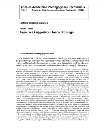 sumienia krwawego despoty. Do wielu tajemnic okrywających jego życie nieodzowne jest więc dopisać sekrety carskiej biblioteki - zbyt skromnej wobec pisarskich ambicji Iwana IV. W tym odniesieniu prawdopodobna wydaje się być hipoteza
