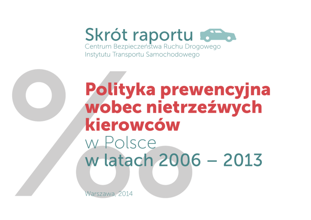 Skrót raportu Centrum Bezpieczeństwa Ruchu Drogowego Instytutu Transportu Samochodowego Polityka prewencyjna wobec nietrzeźwych kierowców w Polsce w latach 2006 – 2013 Warszawa, 2014 Wstęp „ SPADEK LICZBY WYPADKÓW, DO KTÓRYCH DOSZŁO W WYNIKU SPOŻYCIA ALKOHOLU ORAZ WYRAŹNY SPADEK LICZBY ZATRZYMANYCH NIETRZEŹWYCH KIERUJĄCYCH W STOSUNKU DO OGÓŁU SKONTROLOWANYCH Celem opracowania pt. „Polityka prewencyjna wobec nietrzeźwych kierowców w Polsce w latach 2006 – 2013”, przygotowanego przez ekspertów Centrum Bezpieczeństwa Ruchu Drogowego w Instytucie Transportu Samochodowego, jest całościowe spojrzenie na problematykę obecności alkoholu jako czynnika ryzyka w ruchu drogowym w Polsce na przestrzeni ostatnich lat. W publicznym odbiorze prowadzenie pojazdów przez kierujących pod wpływem alkoholu stanowi jedną z głównych przyczyn wypadków drogowych w Polsce. Świadomość tę podtrzymują podawane do publicznej wiadomości informacje o wypadkach z udziałem nietrzeźwych uczestników ruchu drogowego, głównie kierowców. Analiza danych statystycznych Policji pozwala jednak zaobserwować jednoznaczny trend, jakim jest spadek liczby wypadków, do których doszło w wyniku spożycia alkoholu oraz wyraźny spadek liczby zatrzymanych nietrzeźwych kierujących w stosunku do ogółu skontrolowanych. Dlatego za zasadne wydaje się podjęcie próby przeanalizowania głównych możliwych przyczyn pozytywnych zmian. Odpowiedź na pytanie, które z dotychczas realizowanych działań okazało się najbardziej skuteczne, może okazać się kluczowa dla sformułowania rekomendacji dla dalszych inicjatyw na rzecz ograniczania ryzyka w ruchu drogowym z tytułu udziału w nim nietrzeźwych kierujących. W tym celu autorzy Raportu podjęli się przeanalizowania sposobów realizacji polityki prewencyjnej w Polsce w zakresie nietrzeźwych kierujących, zarówno od strony wdrożonej legislacji, nadzoru nad przestrzeganiem prawa, edukacji, szkolenia kierowców jak i kampanii społecznych. Warto zwrócić szczególną uwagę na kompleksowość Raportu, który nie ogranicza się tylko do jednej sfery, 2 Polityka prewencyjna wobec nietrzeźwych kierowców w Polsce w latach 2006 – 2013 np. administracyjnej, lecz próbuje również dokonać ewaluacji tak złożonych działań, jak np. kampanie społeczne czy inne, szerzej rozumiane kreowanie zmiany postaw społecznych, w tym także w zakresie coraz bardziej powszechnego braku przyzwolenia na prowadzenie pojazdów pod wpływem alkoholu, jak też społecznego oczekiwania dla wdrażania kolejnych rozwiązań prewencyjnych. Raport powstał z myślą o wszystkich interesariuszach debaty publicznej dotyczącej problematyki nietrzeźwości, jako zagrożenia w ruchu drogowym, w szczególności jego wnioski kierowane są do tych osób i instytucji, które mają administracyjny wpływ na kreowanie prewencyjnej polityki państwa w tym zakresie. Rzetelne podsumowanie dotychczasowych działań, które znajduje się w niniejszym raporcie powinno stać się podstawą wyjścia dla opracowania kolejnych propozycji, które wspólnym wysiłkiem wszystkich zainteresowanych stron będą mogły najskuteczniej przyczynić się do dalszej redukcji zagrożeń z tytułu alkoholu w ruchu drogowym. 0.1 0.1 Rozpowszechnienie alkoholu w populacji użytkowników dróg W roku 2013 policja przeprowadziła ponad 8,9 mln kontroli stanu trzeźwości na drogach, w wyniku których stwierdzono alkohol u 1,1%skontrolowanych kierowców. Kontrole realizowane w latach 2012 i 2011 ujawniły odpowiednio 1,4% (2012) i niemal 2% (2011) nietrzeźwych kierowców. Wyniki unijnego badania opinii SARTRE 4, którego ostatnia fala realizowana była w Polsce w roku 2010, pokazały, że do prowadzenia pojazdu po alkoholu w ciągu ostatniego roku przyznało się 3,4% kierowców samochodów i 1,8% motocyklistów. ców. Badanie zrealizowano w 13 krajach Europy, w Polsce na próbie 4.000 kierowców, losowo zatrzymywanych na drogach. Alkohol stwierdzono u 1,43% zbadanych polskich kierowców. Niewątpliwie alkohol jest obecny w populacji użytkowników dróg, ale poziom jego rozpowszechnienia daleki jest od poziomu alarmującego. Na podstawie zebranych wyników badań rozpowszechnienie alkoholu w populacji kierowców należałoby szacować na poziomie 3 – 5%. W roku 2010 przeprowadzono również w Polsce ważne badanie DRUID (Driving under the Influence of Drugs, Alcohol and Medicines), którego celem było uzyskanie wiedzy na temat rozpowszechnienia substancji psychoaktywnych w populacji kierow- 3 Polityka prewencyjna wobec nietrzeźwych kierowców w Polsce w latach 2006 – 2013 0.2 0.2 Wypadki drogowe z udziałem nietrzeźwych użytkowników dróg Wypadki drogowe oraz ich konsekwencje (liczba ofiar śmiertelnych oraz rannych) są traktowane w Polsce jako podstawowy punkt odniesienia przy ocenie efektów wdrażanej i realizowanej polityki prewencyjnej wobec nietrzeźwych kierowców. Z danych Komendy Głównej Policji wynika, że w roku 2013: • nietrzeźwi użytkownicy dróg wzięli udział w 4.028 wypadkach drogowych (11,2% ogółu wypadków), w których zginęło 15,5% ogółu ofiar (523 osoby); „ • nietrzeźwi użytkownicy dróg spowodowali 8,4% ogółu wypadków drogowych, w których zginęło 12,7% wszystkich ofiar wypadków; W porównaniu z rokiem 2012, liczba wypadków z udziałem nietrzeźwych użytkowników dróg spadła o 9,8% , a liczba ofiar śmiertelnych o 10,4%. Analiza danych z lat poprzednich wskazuje, że od roku 2001 obserwujemy spadek liczby wypadków, w które uwikłani są nietrzeźwi użytkownicy dróg. Największy spadek liczby wypadków z udziałem nietrzeźwych kierowców zanotowano w grupie wiekowej 19-31 lat (rys.1). Jest to bardzo pozytywna zmiana, bo z osobami w tym wieku najczęściej łączone są różnorodne ryzykowne zachowania. Co więcej, wyniki wielu badań naukowych wskazują, że młodzi ludzie są gorzej przygotowani, aby w ruchu drogowym kompenso