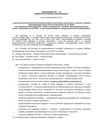 ZARZĄDZENIE NR …/15 BURMISTRZA KROSNA ODRZAŃSKIEGO