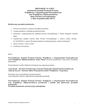 PROTOKÓŁ Nr 5/2012 posiedzenia Komisji Promocji Powiatu