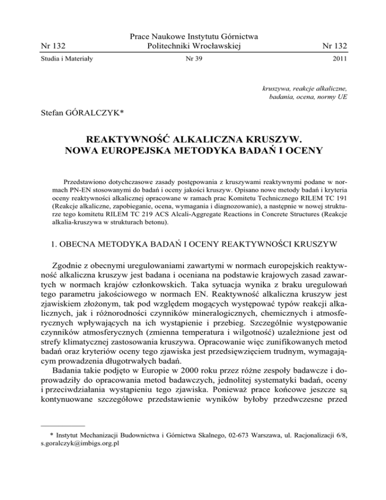 REAKTYWNO ű ALKALICZNA KRUSZYW. NOWA EUROPEJSKA