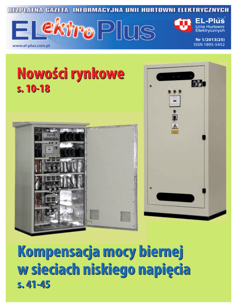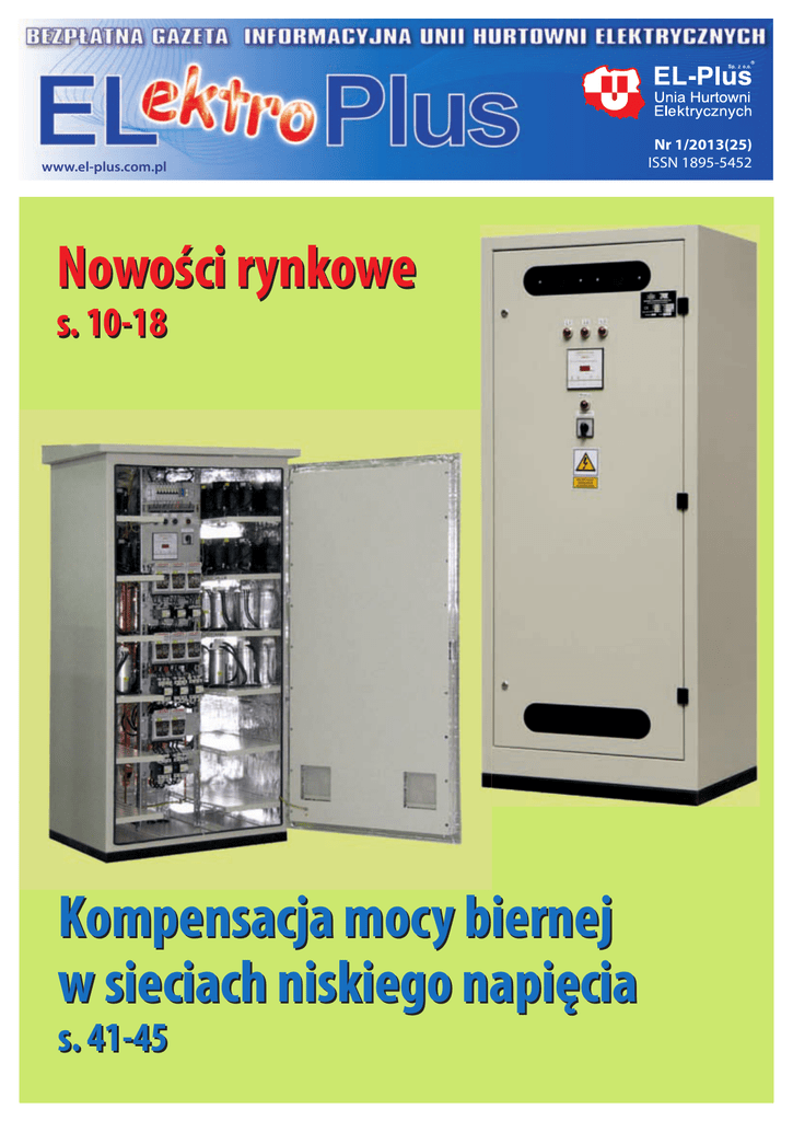 www.el-plus.com.pl Nowości rynkowe s. 10-18 Kompensacja mocy biernej w sieciach niskiego napięcia s. 41-45 Nr 1/2013(25) ISSN 1895-5452 Zachwyć się jakością światła Philips LED Zastosowanie technologii LED w źródłach światła to największa rewolucja od czasu wynalezienia żarówki. Diody Philips LED pozwalają zaoszczędzić tyle energii elektrycznej, że projekt zwraca się już po kilkunastu miesiącach. Dzięki swojej żywotności do 40 tys. godzin stanowią inwestycję na lata. Philips oferuje szeroki wachlarz profesjonalnych i konsumenckich źródeł LED, które łączą najwyższą jakość światła z nagradzanym na świecie wzornictwem, stanowiącym idealne wykończenie do każdej oprawy czy żyrandola. Wśród innowacyjnych produktów Philips, znaleźć można produkty zastępujące niemal wszystkie tradycyjne źródła światła: standardowe żarówki, świeczki, kulki, halogeny czy reflektory. Źródła LED to także świetlówki liniowe, które dziś z powodzeniem mogą zastąpić technologię TL-D, a swoją wydajnością lm/W przewyższają rozwiązania oparte na T5. Ekonomiczna oprawa LED o wysokich parametrach świetlnych Philips, jako leader w innowacjach, wprowadził właśnie na rynek ledowy odpowiednik 100W żarówki, a także unikalny systemem regulacji strumienia DimTone oraz zaproponował kompleksowe rozwiązanie dla niskonapięciowych źródeł światła. Dzięki zaprojektowanemu zasilaczowi niskonapięciowe źródła LED są kompatybilne z większością elektronicznych i elektromagnetycznych transformatorów. ClearWay Szanowni Państwo, Z przyjemnością prezentujemy kolejne wydanie czasopisma ELektroPLUS. W obecnym numerze przedstawiamy jedne z najważniejszych modułowych elementów automatyki czyli przekaźniki nadzorcze firmy ETI Polam oraz elektroniczny przekaźnik czasowy z wyświetlaczem LED i cyfrowymi nastawami firmy Relpol. Przybliżamy również zastosowanie listew i gniazd zasilających serii Protection Box firmy EATON. Prezentujemy najnowsze produkty z zakresu oświetlania: oprawy Plano LED firmy Lena Lighting, którym przyznano Złoty Medal Prezesa SEP oraz linie produktów CoreLine LED firmy Philips Lighting czyli stylowe, energooszczędne i łatwe do zainstalowania oprawy w przystępnej cenie a także naświetlacze ledowe firmy GTV, które są doskonałą alternatywą tradycyjnych, energochłonnych, reflektorów halogenowych. Wewnątrz numeru opisujemy także nowe rozdzielnice natynkowe firmy ELEKTRO-PLAST Nasielsk, tj. EP-LUX PLUS i GALANT PLUS. Przybliżamy zalety zastosowania nowej serii łączników i gniazd firmy Schneider Electric o nazwie „Sedna” oraz osprzętów instalacyjnych firmy ELEKTRO-PLAST Nasielsk: CARLA™ i AQUANT™. Natomiast standardowo na początek proponujemy zapoznanie się najnowszymi rynkowymi „nowinkami”. W bieżącym numerze analizujemy również korzyści ekonomiczne kompensacji mocy biernej w sieciach niskiego napięcia. Życzymy miłej lektury! Redakcja ELektroPlus'a W numerze: Aktualności......................................................................................5 Nowości rynkowe...........................................................................10 Rodzina Philips CoreLine LED..........................................................20 Zastosowanie listew i gniazd zasilających serii Protection Box firmy EATON......................................................22 Seria łączników i gniazd – Sedna.....................................................24 Przekaźniki nadzorcze firmy ETI Polam w układach automatyki – cześć II....................................................26 NOWOŚĆ! Przekaźnik czasowy z wyświetlaczem LED i cyfrowymi nastawami ..................................................................30 Nowości w ofercie firmy ELEKTRO-PLAST Nasielsk..........................32 Pełne portfolio żarówek LED............................................................36 Szeroki wybór naświetlaczy ledowych............................................37 PLANO LED – oszczędności i prestiż.................................................38 Kompensacja mocy biernej w sieciach niskiego napięcia – korzyści ekonomiczne..................................................................41 Zapraszamy wszystkich Czytelników do współpracy z redakcją EL–PLUS, prosimy o przesyłanie swoich opinii, spostrzeżeń oraz uwag. Dziękujemy. Wydawca: Unia Hurtowni Elektrycznych „EL–Plus” Sp. z o. o. Chorzów, ul. Inwalidzka 11, tel. 032/246 12 02, fax 032/247 30 20 www.el–plus.com.pl, e–mail: redakcja@el–plus.com.pl WYDARZENIA Hurtownia ELEKTRO-HURT w Inowrocławiu 24 maja br odbyło się uroczyste otwarcie nowego oddziału hurtowni ELEKTRO-HURT A.WINTER w Inowrocławiu. Licznie przybyłych gości zaproszono na teren hurtowni w Inowrocławiu przy ul. Marcinkowskiej 121 gdzie swoją ofertę zaprezentowali następujący producenci: PHILIPS LIGHTING POLAND, KANLUX, GTV, BEMKO, EMOS, ETI POLAM, SCHNEIDER ELECTRIC, EATON ELECTRIC, CHINT, ZAMEL, F&F, Firma KUBIAK, PCE Dzierżoniów, ELEKTROMET, ELEKTROPLAST Opatówek, POKÓJ, KOS ELEKTRO SYSTEM, KARLIK, KONTAKT-SIMON, OSPEL, KNIPEX, PAWBOL. dobierania odpowiednich materiałów. Nie zabrakło także merytorycznych rozmów i wymiany kontaktów. Następnie zaproszono gości do Hotelu „Park” usytuowanego w obrębie Parku Solankowego, który charakteryzuje się leczniczym mikroklimatem i znajduje się w bliskim sąsiedztwie Tężni solankowej – jednej z trzech w Polsce. Spotkanie rozpoczęło się od prezentacji historii oraz aktualnej działalności firmy PW Elektro-Hurt Aleksander Winter Sp. z o.o. Po oficjalnym rozpoczęciu dla uczestników zorganizowano casyno ze stołami do gier hazardowych a także mogli podziwiać pokaz barmański. Czas umilił zespół jazzowy oraz przepyszna kuchnia. Zaproszeni producenci zaprezentowali dostępną ofertę oraz najnowsze propozycje. Uczestnicy mogli pogłębić wied