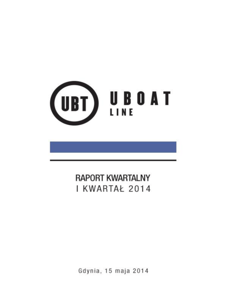 1 Spis treści 1. Oświadczenie Zarządu Emitenta ................................................................................................. 3 2. List Prezesa Zarządu .................................................................................................................... 4 3. Uboat-Line S.A. – informacje podstawowe o Spółce .................................................................. 5 4. Uboat-Line S.A. – charakterystyka działalności ........................................................................... 6 5. Otoczenie rynkowe i przewagi konkurencyjne Uboat-Line S.A................................................... 7 6. Informacje o zasadach przyjętych przy sporządzaniu raportu .................................................... 8 7. Kwartalne skrócone jednostkowe sprawozdanie finansowe Emitenta za I kwartał 2014 r. ..... 10 8. Opis organizacji grupy kapitałowej, ze wskazaniem jednostek podlegających konsolidacji..... 13 9. W przypadku, gdy Emitent tworzy grupę kapitałową i nie sporządza skonsolidowanych sprawozdań finansowych – wskazanie przyczyn niesporządzania takich sprawozdań..................... 13 10. Informacja o strukturze akcjonariatu Emitenta, ze wskazaniem akcjonariuszy posiadających, na dzień sporządzenia raportu, co najmniej 5% głosów na walnym zgromadzeniu ......................... 14 11. Dodatkowe dane, jeżeli ich uwzględnienie w raporcie kwartalnym jest konieczne dla przedstawienia aktualnej sytuacji majątkowej i finansowej Emitenta w sposób rzetelny i kompetentny ..................................................................................................................................... 15 12. Zwięzła charakterystyka istotnych dokonań lub niepowodzeń Emitenta w okresie, którego dotyczy raport, wraz z opisem najważniejszych czynników i zdarzeń, w szczególności o nietypowym charakterze, mających wpływ na osiągnięte wyniki ......................................................................... 15 13. Jeżeli w okresie objętym raportem Emitent podejmował w obszarze rozwoju prowadzonej działalności inicjatywy nastawione na wprowadzenie rozwiązań innowacyjnych w przedsiębiorstwie – informacje na temat tej aktywności ................................................................. 16 14. Jeżeli Emitent przekazywał do publicznej wiadomości prognozy wyników finansowych stanowisko odnośnie możliwości zrealizowania publikowanych prognoz wyników na dany rok w świetle wyników zaprezentowanych w danym raporcie kwartalnym .............................................. 17 15. W przypadku gdy Dokument Informacyjny Emitenta zawierał informacje, o których mowa w § 10 pkt 13a) załącznika nr 1 do Regulaminu ASO – opis stanu realizacji działań i inwestycji Emitenta oraz harmonogramu ich realizacji ..................................................................................... 17 16. Informacje dotyczące liczby osób zatrudnionych przez Emitenta, w przeliczeniu na pełne etaty ............................................................................................................................................... 17 2 1. Oświadczenie Zarządu Emitenta Gdynia, 15 maja 2014 r. OŚWIADCZENIE ZARZĄDU Dotyczące informacji finansowych i danych za I kwartał 2014 r. Zarząd Uboat-Line S.A. z siedzibą w Gdyni („Emitent”) przedstawia raport za okres od 1 stycznia 2014 r. do 31 marca 2014 r., na który składają się: Wybrane jednostkowe dane finansowe Emitenta zamykające się w I kwartale 2014 r. zyskiem w wysokości 832 180,13 zł. Komentarz Zarządu Emitenta na temat czynników i zdarzeń, które miały wpływ na osiągnięte wyniki finansowe, Informacja Zarządu Emitenta na temat aktywności, jaką w okresie objętym raportem Emitent podejmował w obszarze rozwoju prowadzonej działalności, w szczególności poprzez działania nastawione na wprowadzenie rozwiązań innowacyjnych w przedsiębiorstwie. Zarząd Uboat-Line S.A. z siedzibą w Gdyni oświadcza, iż wedle jego najlepszej wiedzy, wybrane informacje finansowe i dane porównywalne, sporządzone zostały zgodnie z obowiązującymi zasadami rachunkowości oraz że odzwierciedlają one w sposób prawdziwy, rzetelny i jasny sytuację majątkową Emitenta oraz wynik finansowy. Grzegorz Misiąg Prezes Zarządu Tomasz Wacięga Wiceprezes Zarządu Artur Smolik Wiceprezes Zarządu 3 2. List Prezesa Zarządu Szanowni Państwo, Oddajemy w Państwa ręce raport Uboat-Line S.A. opisujący wyniki finansowe oraz najważniejsze wydarzenia z I kwartału 2014 r. Okres ten Uboat-Line S.A. zakończył przychodami w wysokości 17.256 tys. zł oraz 832 tys. zł zysku netto. Jak mogą się Państwo przekonać, nasza Spółka nadal jest na ścieżce wzrostu. Zarząd podejmuje działania, które mają na celu zapewnienie tego wzrostu również w przyszłych okresach. Już po zakończeniu trzeciego kwartału poinformowaliśmy między innymi o decyzji dotyczącej rozszerzenia wachlarza oferowanych przez nas usług o pośrednictwo ubezpieczeniowe. W przyszłości mamy zamiar wzbogacać naszą ofertę o kolejne, komplementarne usług, które możemy zaproponować naszym klientom, czyli firmom transportowym. W wielu przypadkach odpowiadamy tym samym na zapotrzebowanie zgłaszane przez naszych partnerów. Naszym mottem jest „Wspieramy i organizujemy transport”. Zgodnie z nim, chcemy wspierać firmy transportowe w możliwie jak najszerszym obszarze. Innym przykładem takiego działania w ostatnich miesiącach jest wprowadzenie do oferty obsługi nowego podatku drogowego w Wielkiej Brytanii. Kierunek brytyjski jest bardzo ważny dla wielu polskich firm, a nasza oferta odpowiada na istotne zapotrzebowanie rynku. W przyszłości również będziemy szybko i elastycznie reagować na to co dzieje się w otoczeniu rynkowym. W ślad za rozszerzeniem oferty i obszaru działalności idzie reorganizacja struktury naszej Spółki. Jest ona 