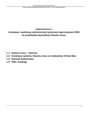 1.2 Instalacja systemu Ubuntu Linux w oparciu o środowisko