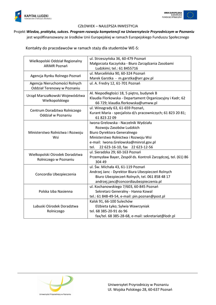 listę kontaktów do pracodawców - Uniwersytet Przyrodniczy w