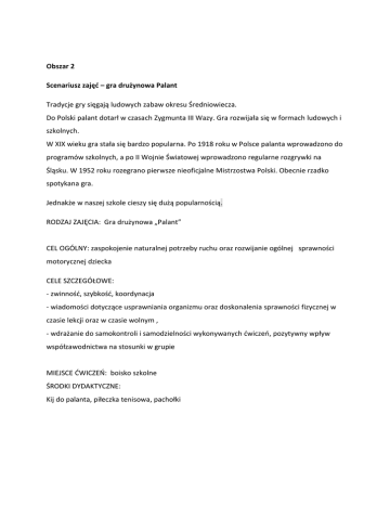 Obszar 2 Scenariusz zajęć – gra drużynowa Palant