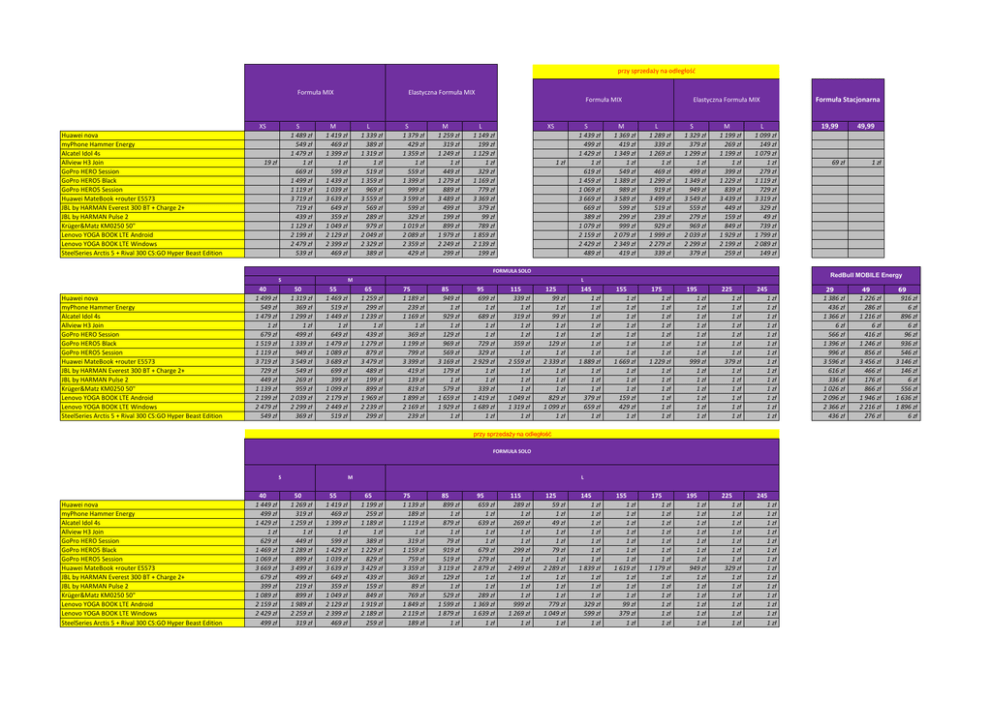 przy sprzedaży na odległość Formuła MIX Elastyczna Formuła MIX Formuła MIX XS Huawei nova myPhone Hammer Energy Alcatel Idol 4s Allview H3 Join GoPro HERO Session GoPro HERO5 Black GoPro HERO5 Session Huawei MateBook +router E5573 JBL by HARMAN Everest 300 BT + Charge 2+ JBL by HARMAN Pulse 2 Krüger&Matz KM0250 50" Lenovo YOGA BOOK LTE Android Lenovo YOGA BOOK LTE Windows SteelSeries Arctis 5 + Rival 300 CS:GO Hyper Beast Edition S 1 489 zł 549 zł 1 479 zł 1 zł 669 zł 1 499 zł 1 119 zł 3 719 zł 719 zł 439 zł 1 129 zł 2 199 zł 2 479 zł 539 zł 19 zł M 1 419 zł 469 zł 1 399 zł 1 zł 599 zł 1 439 zł 1 039 zł 3 639 zł 649 zł 359 zł 1 049 zł 2 129 zł 2 399 zł 469 zł L 1 339 zł 389 zł 1 319 zł 1 zł 519 zł 1 359 zł 969 zł 3 559 zł 569 zł 289 zł 979 zł 2 049 zł 2 329 zł 389 zł S 1 379 zł 429 zł 1 359 zł 1 zł 559 zł 1 399 zł 999 zł 3 599 zł 599 zł 329 zł 1 019 zł 2 089 zł 2 359 zł 429 zł M 1 259 zł 319 zł 1 249 zł 1 zł 449 zł 1 279 zł 889 zł 3 489 zł 499 zł 199 zł 899 zł 1 979 zł 2 249 zł 299 zł L 1 149 zł 199 zł 1 129 zł 1 zł 329 zł 1 169 zł 779 zł 3 369 zł 379 zł 99 zł 789 zł 1 859 zł 2 139 zł 199 zł XS 1 zł S 1 439 zł 499 zł 1 429 zł 1 zł 619 zł 1 459 zł 1 069 zł 3 669 zł 669 zł 389 zł 1 079 zł 2 159 zł 2 429 zł 489 zł Elastyczna Formuła MIX M 1 369 zł 419 zł 1 349 zł 1 zł 549 zł 1 389 zł 989 zł 3 589 zł 599 zł 299 zł 999 zł 2 079 zł 2 349 zł 419 zł L 1 289 zł 339 zł 1 269 zł 1 zł 469 zł 1 299 zł 919 zł 3 499 zł 519 zł 239 zł 929 zł 1 999 zł 2 279 zł 339 zł S 1 329 zł 379 zł 1 299 zł 1 zł 499 zł 1 349 zł 949 zł 3 549 zł 559 zł 279 zł 969 zł 2 039 zł 2 299 zł 379 zł M 1 199 zł 269 zł 1 199 zł 1 zł 399 zł 1 229 zł 839 zł 3 439 zł 449 zł 159 zł 849 zł 1 929 zł 2 199 zł 259 zł L 1 099 zł 149 zł 1 079 zł 1 zł 279 zł 1 119 zł 729 zł 3 319 zł 329 zł 49 zł 739 zł 1 799 zł 2 089 zł 149 zł 19,99 155 1 zł 1 zł 1 zł 1 zł 1 zł 1 zł 1 zł 1 669 zł 1 zł 1 zł 1 zł 159 zł 429 zł 1 zł 175 1 zł 1 zł 1 zł 1 zł 1 zł 1 zł 1 zł 1 229 zł 1 zł 1 zł 1 zł 1 zł 1 zł 1 zł 195 1 zł 1 zł 1 zł 1 zł 1 zł 1 zł 1 zł 999 zł 1 zł 1 zł 1 zł 1 zł 1 zł 1 zł 225 1 zł 1 zł 1 zł 1 zł 1 zł 1 zł 1 zł 379 zł 1 zł 1 zł 1 zł 1 zł 1 zł 1 zł 245 1 zł 1 zł 1 zł 1 zł 1 zł 1 zł 1 zł 1 zł 1 zł 1 zł 1 zł 1 zł 1 zł 1 zł 29 155 1 zł 1 zł 1 zł 1 zł 1 zł 1 zł 1 zł 1 619 zł 1 zł 1 zł 1 zł 99 zł 379 zł 1 zł 175 1 zł 1 zł 1 zł 1 zł 1 zł 1 zł 1 zł 1 179 zł 1 zł 1 zł 1 zł 1 zł 1 zł 1 zł 195 1 zł 1 zł 1 zł 1 zł 1 zł 1 zł 1 zł 949 zł 1 zł 1 zł 1 zł 1 zł 1 zł 1 zł 225 1 zł 1 zł 1 zł 1 zł 1 zł 1 zł 1 zł 329 zł 1 zł 1 zł 1 zł 1 zł 1 zł 1 zł 245 1 zł 1 zł 1 zł 1 zł 1 zł 1 zł 1 zł 1 zł 1 zł 1 zł 1 zł 1 zł 1 zł 1 zł FORMUŁA SOLO S Huawei nova myPhone Hammer Energy Alcatel Idol 4s Allview H3 Join GoPro HERO Session GoPro HERO5 Black GoPro HERO5 Session Huawei MateBook +router E5573 JBL by HARMAN Everest 300 BT + Charge 2+ JBL by HARMAN Pulse 2 Krüger&Matz KM0250 50" Lenovo YOGA BOOK LTE Android Lenovo YOGA BOOK LTE Windows SteelSeries Arctis 5 + Rival 300 CS:GO Hyper Beast Edition 40 1 499 zł 549 zł 1 479 zł 1 zł 679 zł 1 519 zł 1 119 zł 3 719 zł 729 zł 449 zł 1 139 zł 2 199 zł 2 479 zł 549 zł M 50 1 319 zł 369 zł 1 299 zł 1 zł 499 zł 1 339 zł 949 zł 3 549 zł 549 zł 269 zł 959 zł 2 039 zł 2 299 zł 369 zł 55 1 469 zł 519 zł 1 449 zł 1 zł 649 zł 1 479 zł 1 089 zł 3 689 zł 699 zł 399 zł 1 099 zł 2 179 zł 2 449 zł 519 zł 75 1 189 zł 239 zł 1 169 zł 1 zł 369 zł 1 199 zł 799 zł 3 399 zł 419 zł 139 zł 819 zł 1 899 zł 2 169 zł 239 zł 85 949 zł 1 zł 929 zł 1 zł 129 zł 969 zł 569 zł 3 169 zł 179 zł 1 zł 579 zł 1 659 zł 1 929 zł 1 zł 95 699 zł 1 zł 689 zł 1 zł 1 zł 729 zł 329 zł 2 929 zł 1 zł 1 zł 339 zł 1 419 zł 1 689 zł 1 zł 115 339 zł 1 zł 319 zł 1 zł 1 zł 359 zł 1 zł 2 559 zł 1 zł 1 zł 1 zł 1 049 zł 1 319 zł 1 zł 125 99 zł 1 zł 99 zł 1 zł 1 zł 129 zł 1 zł 2 339 zł 1 zł 1 zł 1 zł 829 zł 1 099 zł 1 zł 145 1 zł 1 zł 1 zł 1 zł 1 zł 1 zł 1 zł 1 889 zł 1 zł 1 zł 1 zł 379 zł 659 zł 1 zł przy sprzedaży na odległość FORMUŁA SOLO S Huawei nova myPhone Hammer Energy Alcatel Idol 4s Allview H3 Join GoPro HERO Session GoPro HERO5 Black GoPro HERO5 Session Huawei MateBook +router E5573 JBL by HARMAN Everest 300 BT + Charge 2+ JBL by HARMAN Pulse 2 Krüger&Matz KM0250 50" Lenovo YOGA BOOK LTE Android Lenovo YOGA BOOK LTE Windows SteelSeries Arctis 5 + Rival 300 CS:GO Hyper Beast Edition 40 1 449 zł 499 zł 1 429 zł 1 zł 629 zł 1 469 zł 1 069 zł 3 669 zł 679 zł 399 zł 1 089 zł 2 159 zł 2 429 zł 499 zł M 50 1 269 zł 319 zł 1 259 zł 1 zł 449 zł 1 289 zł 899 zł 3 499 zł 499 zł 219 zł 899 zł 1 989 zł 2 259 zł 319 zł 55 1 419 zł 469 zł 1 399 zł 1 zł 599 zł 1 429 zł 1 039 zł 3 639 zł 649 zł 359 zł 1 049 zł 2 129 zł 2 399 zł 469 zł L 65 1 199 zł 259 zł 1 189 zł 1 zł 389 zł 1 229 zł 829 zł 3 429 zł 439 zł 159 zł 849 zł 1 919 zł 2 189 zł 259 zł 75 1 139 zł 189 zł 1 119 zł 1 zł 319 zł 1 159 zł 759 zł 3 359 zł 369 zł 89 zł 769 zł 1 849 zł 2 119 zł 189 zł 85 899 zł 1 zł 879 zł 1 zł 79 zł 919 zł 519 zł 3 119 zł 129 zł 1 zł 529 zł 1 599 zł 1 879 zł 1 zł 95 659 zł 1 zł 639 zł 1 zł 1 zł 679 zł 279 zł 2 879 zł 1 zł 1 zł 289 zł 1 369 zł 1 639 zł 1 zł 115 289 zł 1 zł 269 zł 1 zł 1 zł 299 zł 1 zł 2 499 zł 1 zł 1 zł 1 zł 999 zł 1 269 zł 1 zł 125 59 zł 1 zł 49 zł 1 zł 1 zł 79 zł 1 zł 2 289 zł 1 zł 1 zł 1 zł 779 zł 1 049 zł 1 zł 145 1 zł 1 zł 1 zł 1 zł 1 zł 1 zł 1 zł 1 839 zł 1 zł 1 zł 1 zł 329 zł 599 zł 1 zł 49,99 69 zł 1 zł RedBull MOBILE Energy L 65 1 259 zł 299 zł 1 239 zł 1 zł 439 zł 1 279 zł 879 zł 3 479 zł 489 zł 19