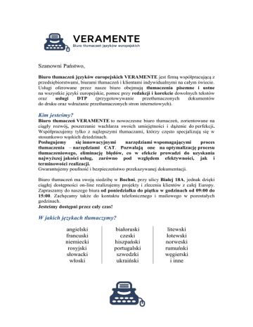 Pobierz ofertę PDF - Biuro tłumaczeń VERAMENTE