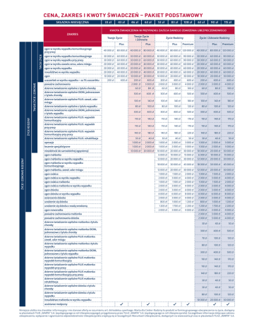 cena, zakres i kwoty świadczeń – pakiet