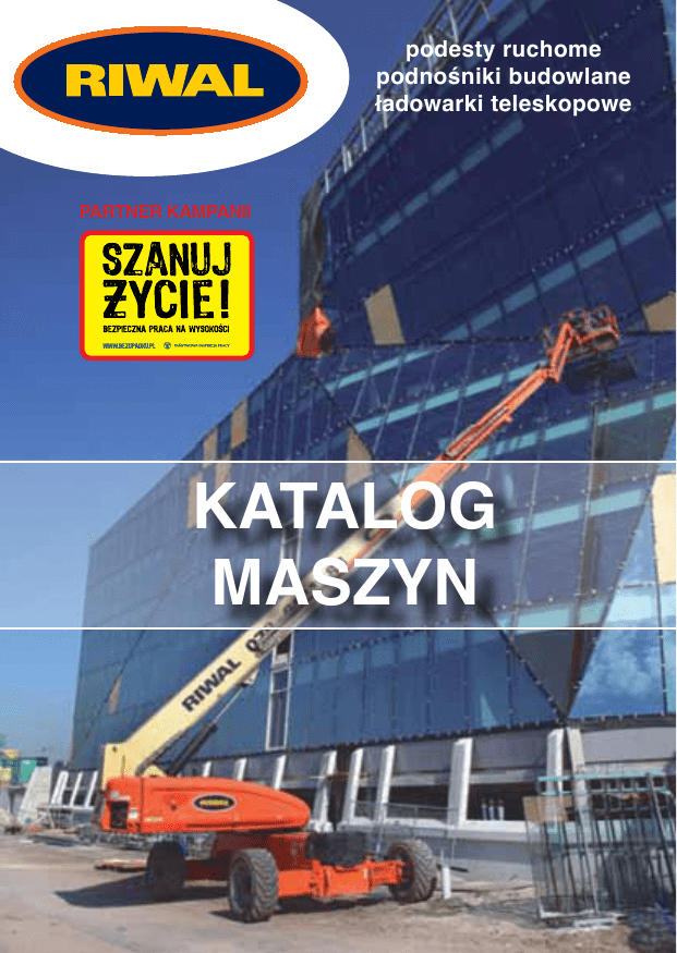 podesty ruchome podnośniki budowlane ładowarki teleskopowe partner kampanii katalog maszyn +48 46 895 13 63 podesty ruchome podnośniki budowlane ładowarki teleskopowe Firma RIWAL została założona w 1968 roku w Holandii i od początku istnienia związana jest z branżą wynajmu maszyn budowlanych. Jako wypożyczalnia sprzętu specjalizuje się w wynajmie podnośników budowlanych, podestów roboczych jak i ładowarek teleskopowych w tym ładowarek teleskopowych z platformą roboczą. W chwili obecnej RIWAL jest obecny na wiodących rynkach europejskich i światowych m.in. Francji, Danii, Niemiec, Hiszpanii, Wielkiej Brytanii, Chorwacji, Brazylii oraz innych. W Polsce RIWAL istnieje od 2008 roku i od początku oferuje najnowsze maszyny renomowanych producentów: JLG, Genie, JCB, Holland Lift, Nifty lift, MEC które gwarantują najwyższy poziom bezpieczeństwa, maksymalną wydajność pracy oraz łatwość użytkowania. Wyróżniają nas jasno określone reguły współpracy: wynajem i usługi na terenie całego kraju, elastyczny system rozliczeniowy, wsparcie serwisowe, szkolenia operatorów UDT, kompetentna obsługa klienta oraz możliwość otworzenia parku maszynowego na terenie budowy. Dzięki licznym oddziałom sprzętowym, RIWAL zapewnia szybkość zarówno przy dostawie jak i serwisie maszyn. Do wynajmowanych przez RIWAL podnośników budowlanych, podestów ruchomych oraz ładowarek teleskopowych zapewniamy transport oraz pełną obsługę serwisową w miejscu pracy, dokumentacje UDT, szkolenia operatorskie i doradztwo techniczne. WYNAJEM W naszej flocie maszyn znajduje się pełna gama podnośników nożycowych, teleskopowych o napędzie elektrycznym i spalinowym. Zapewniamy maszyny do prac wewnątrz budynków, jak i na bardziej wymagającym terenie. Oferujemy urządzenia najnowszych generacji i tylko najlepszych światowych producentów, takich jak: JLG, Genie, Niftylift, MEC. Gwarantujemy wynajem sprzętu na terenie całej Polski oraz gamę maszyn dostosowaną do Państwa potrzeb. SPRZEDAŻ Jesteśmy największym, niezależnym dealerem wiodącego producenta maszyn JLG Industries w Europie. Dzięki ścisłej współpracy jesteśmy w stanie zapewnić szybką dostawę sprzętu i pełną obsługę serwisową maszyn JLG. Prowadzimy sprzedaż maszyn fabrycznie nowych jak i używanych z naszej floty. SERWIS Działamy zgodnie z zaleceniami producentów maszyn oraz Urzędu Dozoru Technicznego, dokonujemy przeglądów wszystkich maszyn przed dostarczeniem do klienta tak aby otrzymał maszynę w pełni sprawną, gotową do pracy. Zapewniamy pełen serwis maszyn z naszej floty. Wszyscy nasi technicy posiadają uprawnienia konserwatorskie UDT. Dla wszystkich projektów na terenie Polski zapewniamy szybką pomoc serwisową bezpośrednio u klienta lub wymianę urządzenia tak, aby prace przebiegały bez zakłóceń. Używamy tylko i wyłącznie oryginalnych podzespołów i akcesoriów. TRANSPORT Zapewniamy własny specjalistyczny transport naszych maszyn, dzięki czemu zawsze sprawnie i terminowo dostarczamy wynajęty sprzęt pod wskazany przez klienta adres na terenie całego kraju. Dostarczamy nasze maszyny z 5 oddziałów w Polsce. Prowadzimy również działalność związaną ze sprzedażą nowych maszyn producenta JLG (jesteśmy największym dystrybutorem marek JLG, Liftlux, Toucan w Europie), sprzedażą części zamiennych jak i maszyn używanych pochodzących z floty RIWAL. SZKOLENIA Oferujemy szkolenia na Operatora podestów ruchomych i ładowarek teleskopowych. Szkolenia te pozwolą Państwu na bezpieczne korzystanie z naszych maszyn według norm i zaleceń Urzędu Dozoru Technicznego. Organizowane są cyklicznie w naszych oddziałach na terenie Polski jak również w każdej innej lokalizacji dogodnej dla Klienta. Obejmują zajęcia teoretyczne, praktyczne oraz egzamin UDT. Zgodnie z obowiązującymi przepisami BHP i ustawie o dozorze technicznym, każdy operator podestów roboczych i ładowarek teleskopowych powinien posiadać odpowiednie uprawnienia wydane przez Urząd Dozoru Technicznego oraz PIP. www.riwalpoland.pl www.riwalpoland.pl +48 46 895 13 63 Spis treści Podnośniki nożycowe o napędzie elektrycznym str. 4 Podnośniki nożycowe o napędzie spalinowym str. 26 Podnośniki przegubowe o napędzie elektrycznym str. 46 Podnośniki przegubowe o napędzie spalinowym str. 58 Podnośniki teleskopowe o napędzie spalinowym str. 70 Podnośniki montowane na przyczepkach str. 82 Ładowarki teleskopowe i akcesoria str. 98 www.riwalpoland.pl ●JLG 1230 ES ●UPR TM12 ●JLG 1930 ES ●GENIE GS 1932 ●MEC 1932 ES ●JLG 2030 ES ●MEC 2033 ES ●JLG 2630 ES ●MEC 2633 ES ●JLG 2646 ES ●GENIE GS 2646 ●MEC 2647 ES ●JLG 3246 ES ●GENIE GS 3246 ●MEC 3247 ES ●JLG 3369 LE ●JLG 4069 LE ●HL Q135EL12 ●HL Q135EL18 ●HL N140EL12 ●HL N165EL12 ●HL N195EL12 ●HL N265EL13 ●JLG 260 MRT ●GENIE 3268 RT ●MEC 3072 RT ●MEC 3772 RT ●JLG 3394 RT ●GENIE GS 3390 RT ●haulotte H15SX ●haulotte H18SX ●JLG 4394 RT ●GENIE GS 4390 RT ●SKJ 9250RT ●GENIE GS 5390 RT ●LIFTLUX JLG-SL203-24 ●HL B195DL25 ●HL M250DL27 ●HL G300DL30S ●JLG E300 AJP ●GENIE Z-30/20N ●GENIE Z-34/22N ●UPR AB38N ●JLG E400 AJP ●HA 15IP ●JLG E450 AJ ●JLG E600 JP ●GENIE Z-34 ●JLG 450 AJS2 ●GENIE Z-45/25RT ●JLG 510 AJ ●JLG 600 AJ ●JLG 800 AJ ●JLG 1250 AJP ●GENIE Z-135 ●JLG 150 HAX ●JLG 400 S ●JLG 460 SJ ●JLG 660 SJ ●JLG 860 SJ ●JLG 1200 SJ ●GENIE S125 ●JLG 1350 SJ ●JLG 600 SC ●NIFTY 120 ●DINO 160 ●NIFTY 170 ●DINO 180 ●NIFTY 210 ●OMME 2500 EBDZ ●DINO 260 ●DENKA LIFT DL 30 ●TEUPEN LEO 15GT ●TEUPEN LEO 23GT ●TEUPEN LEO 30GT ●PALAZZANI RANGO TSJ39 ●JLG 3509 ●JLG 3513 ●JCB 540-140 ●JCB 540-170 ●JLG 4017 ●MANITOU MRT2150 ●MANITOU MRT2540 +48 46 895 13 63 Nożycowe podesty o napędzie elektrycznym umożliwiają pracę montażowe, instalacyjne i wykończeniowe w obiektach zamkniętych oraz na zewnątrz na utw