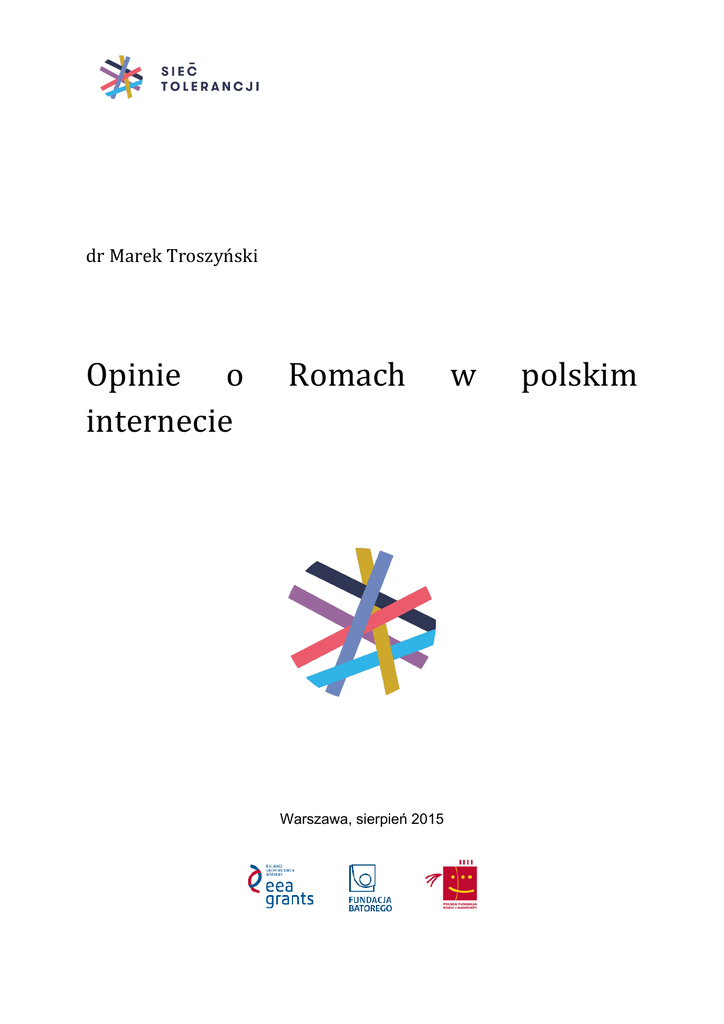 drMarekTroszyński Opinie o internecie Romach Warszawa, sierpień 2015 w polskim Spis treści. Wstęp. .......................................................................................................................... 3 Romowie w badaniach społecznych ............................................................................ 3 Badania CBOS. ........................................................................................................ 3 Badanie dla Fundacji im S. Batorego ....................................................................... 8 Analiza wpisów internetowych. .................................................................................. 10 Raport Brand24. ........................................................................................................ 14 Wstęp. Raport „Opinie o Romach w polskim internecie” jest jednym z sześciu raportów badawczych powstałych w ramach projektu „Sieć tolerancji”. Zawiera podsumowanie wynikówbadańspołecznych,któreuwzględniająopiniePolakówdotycząceRomóworaz analizęiilościowepodsumowaniawpisówinternetowych,którepojawiałysięwpolskim internecieodmarcadosierpnia2015roku. Romowie są mniejszością od wieków zamieszkującą ziemie polskie. Według NarodowegoSpisuPowszechnegonarodowośćromskązadeklarowało16000osób1,co wzestawieniumniejszościnarodowo-etnicznychdajeRomom6.pozycje. Romowie to mniejszości, wokół której narosło w Polsce wiele stereotypów i wynikających z nich uprzedzeń. Dlatego nasze analizy dyskursu w Polskim internecie zostały poprzedzone omówieniem wyników badań opinii odnoszących się do Romów. Poniżejomawiamywynikidwóchbadań:„Stosunekdoinnychnarodów”zrealizowanego przez Centrum Badania Opinii Społecznej oraz „Mowa nienawiści. Raport z badań sondażowych” przygotowany przez Centrum Badań nad Uprzedzeniami dla Fundacji Batorego. Romowie w badaniach społecznych Badania CBOS. StosunekPolakówdoinnychnarodów2015. FundacjaCentrumBadaniaOpiniiSpołecznychodponad20latbadastosunekPolaków doinnychnarodów.Ostatnietakiebadaniebyłoprzeprowadzonewstyczniu2015roku. W ramach projektu „Aktualne problemy i wydarzenia” (296) przeprowadzono metodą wywiadówbezpośrednich(face-to-face)wspomaganychkomputerowo(CAPI)wdniach 8–14 stycznia 2015 roku na liczącej 1005 osób reprezentatywnej próbie losowej dorosłych mieszkańców Polski.2 Zapytano Polaków o stosunek do 32 narodów i grup etnicznych. Badanie realizowane jest według powtarzalnej metodologii. „Respondenci oceniali na siedmiopunktowej skali2, w jakim stopniu darzą dany naród sympatią bądź też są mu 1 2 Raport z wyników. Narodowy Spis Powszechny Ludności i Mieszkań 2011, Warszawa 2012l Komunikat CBOS nr 14/2015, Stosunek do innych narodów, styczeń 2015 niechętni.Uzyskanewynikiprzedstawiamywformiezagregowanejdotrzechkategorii: sympatii(naskalipunktyod+1do+3),obojętności(0)iniechęci(od-1do-3).Wten sposób prezentujemy zasięg sympatii i antypatii do poszczególnych narodów. Dla pełniejszejinformacjiposługujemysięwartościamiśrednich,któredodatkowopokazują natężenie sympatii bądź niechęci. Przy obliczaniu średnich uwzględniliśmy tylko odpowiedzi respondentów deklarujących określony stosunek do danego narodu, pominęliśmyzaśodpowiedziosób,któreniemajązdanianatentemat”3 Rozkładsympatiiiantypatiipokazujeponiższatabela.4 Narody (uszeregowane według malejącego zasięgu sympatii) Włosi Czesi Hiszpanie Anglicy Słowacy Szwedzi Amerykanie Francuzi Węgrzy Holendrzy Niemcy Irlandczycy Szwajcarzy Austriacy Japończycy Belgowie Chorwaci Grecy Ukraińcy Litwini Bułgarzy Gruzini Estończycy Białorusini Żydzi Chińczycy Wietnamczycy Turcy Rosjanie Rumuni 3 4 tamże, s. 1 tamże, s.2 Jak by Pan(i) określił(a) swój stosunek do innych narodów? Trudno Sympatia Obojętność Niechęć powiedzieć w procentach 51 50 49 48 48 46 44 44 44 43 43 42 42 41 40 39 39 39 36 34 32 32 29 28 28 27 25 23 22 21 30 30 29 30 32 29 31 32 32 31 30 31 32 33 30 35 31 33 26 33 32 30 33 32 30 32 29 29 23 26 11 14 12 15 12 14 17 16 14 15 22 15 14 16 18 14 18 18 32 22 25 25 21 29 32 29 31 36 50 43 8 6 10 7 8 11 8 8 10 11 5 12 12 10 12 12 12 10 6 11 11 13 17 11 10 12 15 12 5 10 Średnie* 0,92 0,80 0,86 0,71 0,80 0,74 0,68 0,66 0,73 0,70 0,46 0,66 0,71 0,58 0,55 0,61 0,51 0,53 0,11 0,35 0,24 0,30 0,29 0,06 -0,08 0,00 -0,09 -0,24 -0,60 -0,49 Palestyńczycy Romowie (Cyganie) 20 18 27 18 36 58 17 6 -0,40 -0,93 Tabela 1 * Średnie mierzone na skali od +3 do –3 Romowie według tego badania są grupą, którą najmniej Polaków darzy sympatią, a jednocześnienajwięcejPolakówdeklarujewobecniejniechęć.Dodatkowo,najmniejsza grupabadanych,wporównaniudoinnychnarodów,deklarujepostawęobojętną. GdyprzeanalizujemyzmianyopiniiPolakównaprzestrzeni20lat,toprzedewszystkim widaćspadekpostawniechętnych.Jednakwodniesieniudogeneralnegotrendu,jakim jest wzrost otwartości społeczeństwa polskiego (widoczny w kolejnych badaniach CBOS),tospadekniechęciwobecRomówjestbardzopowolnyiwdodatkufluktuujew kolejnych latach. I tak najmniejszy poziom niechęci mogliśmy zaobserwować w 2010 roku,kiedytotakistosunekdoRomówdeklarowałomniejniżpołowaPolaków.Wtedy teżnajwyższybyłpoziomsympatii–wyrażałjąprawiecoczwartyPolak/Polka. Pomiarzroku2015mówinam,że18%polskiegospołeczeństwawyrażasympatię,18% postawęobojętną,a58%niechęćwobecRomów.Wciąguostatniegorokuśredniaocen naszegostosunkudoRomów(naskaliod-3do3)nieznaczniespadłaiwynosiaktualnie -0,93.Jesttowartośćnajniższadlawszystkichbadanychgrup. Tabela2.Zmianysympatii rok Respondenci Wprocentach ’93 ’94 ’95 ’96 ’97 ’98 ’99 ’01 ’02 ’03 ’04 ’05 ’06 ’07 ’08 ’10 ’11 - 6 10 12 10 10 13 17 15 16 15 13 14 14 21 23 22 ’12 ’13 ’14 ’15 24 20 20 18 Tabela3.Zmianyniechęci rok ’93 ’94 ’95 ’96 ’97 ’98 ’99 ’01 ’02 ’03 ’04’ 05 ’06 ’07 ’08 ’10 ’11 ’12 ’13 ’14 ’1