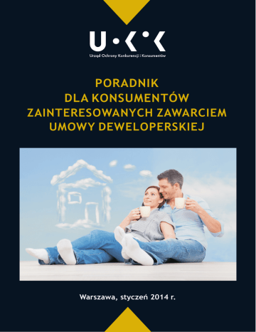 PORADNIK DLA KONSUMENTÓW ZAINTERESOWANYCH ZAWARCIEM UMOWY DEWELOPERSKIEJ Warszawa, styczeñ 2014 r. Poradnik został opracowany przez Departament Polityki Konsumenckiej UOKiK 2 Spis treści I. CO KONSUMENT POWINNIEN WIEDZIEĆ O UMOWACH DEWELOPERSKICH…………....5 II. ETAPY NABYWANIA NIERUCHOMOŚCI…………………………………………………………………….8 III. CO NALEŻY WIEDZIEĆ PRZED ZAWARCIEM UMOWY………………………………………………10 IV. UMOWA DEWELOPERSKA………………………………………………………………………………………14 V. ZAWARCIE UMOWY W FORMIE AKTU NOTARIALNEGO – UJAWNIENIE ROSZCZEŃ W KSIĘDZE WIECZYSTEJ……………………………………………………………………………………….18 VI. ODSTĄPIENIE OD UMOWY DEWELOPERSKIEJ…………………………….………………………….20 VII. ZGODNE ROZWIĄZANIE UMOWY……………………………………………………………………………22 VIII. ODBIÓR NIERUCHOMOŚCI………………………………………………………………………………………23 IX. SKUTKI NIEDOTRZYMANIA TERMINU PRZENIESIENIA NA NABYWCĘ PRAWA WŁASNOŚCI…………………………………………………………………………………………………………..25 X. GWARANCJA WYPŁATY ŚWIADCZEŃ PIENIĘŻNYCH……………………………………………….26 XI. ZARZĄD NIERUCHOMOŚCIĄ WSPÓLNĄ…………………………………………………………………..30 XII. ROSZCZENIA KONSUMENTA…………………………………………………………………………………..32 XIII. DO KOGO ZWRÓCIĆ SIĘ Z PYTANIAMI LUB PROŚBĄ O POMOC……………………………….34 ZAŁĄCZNIK — WZÓR PROSPEKTU INFORMACYJNEGO…………………………………………………………35 3 Słownik pojęć i skrótów: deweloper — przedsiębiorca, który w ramach prowadzonej działaności gospodarczej oraz na podstawie umowy deweloperskiej zobowiązuje się do ustanowienia odrębnej nieruchomości i przeniesienia do niej prawa własności na nabywcę nabywca — osoba fizyczna, która w zamian za przeniesienie na nią prawa własności nieruchomości wybudowanej przez dewelopera, zobowiązuje się do spełnienia świadczenia pieniężnego na poczet ceny nabycia tego prawa kc — Kodeks cywilny konsument — osoba fizyczna dokonująca czynności prawnej niezwiązanej bezpośrednio ze swoją działalnością gospodarcza lub zawodową kpc – Kodeks postępowania cywilnego umowa / umowa deweloperska — umowa, na podstawie której deweloper zobowiązuje się — po zakończeniu przedsięwzięcia deweloperskiego — do ustanowienia odrębnej własności nieruchomości i przeniesienia jej na nabywcę w zamian za świadczenie uiszczane przez nabywcę UOKiK — Urząd Ochrony Konkurencji i Konsumentów Rejestr – rejestr postanowień wzorców umowy uznanych za niedozwolone, o którym mowa w art. 47945 k.p.c. ustawa / ustawa deweloperska — ustawa z dnia 16 września 2011 roku o ochronie praw nabywcy lokalu mieszkalnego lub domu jednorodzinnego (Dz.U. z 2011 r., Nr 232, poz. 1377) ustawa o własności lokali — ustawa z dnia 24 czerwca 1994 r. o własności lokali (Dz.U. z 1994 r., Nr 85, poz. 388, z późn. zm.) 4 I. CO KONSUMENT POWINNIEN WIEDZIEĆ O UMOWACH DEWELOPERSKICH 29 kwietnia 2012 roku weszła w życie ustawa deweloperska 1, wprowadzająca między innymi wiele mechanizmów ochrony nabywców w razie niedotrzymania przez przedsiebiorcę warunków umowy deweloperskiej. Podstawową zmianą w stosunku do wcześniejszej regulacji jest wprowadzenie przez ustawę obowiązku zawarcia umowy deweloperskiej w formie aktu notarialnego. Warunek ten stanowi gwarancję skutecznej realizacji praw nabywcy. Pamiętaj! Uregulowania ustawy deweloperskiej znajdą zastosowanie jedynie do umów zawieranych z deweloperem po 29 kwietnia 2012 roku. Wyjątkiem jest obowiązek stosowania przez dewelopera określonych w ustawie instrumentów ochrony środków finansowych nabywcy 2. Obowiązek ten nie znajduje zastosowania do przedsięwzieć deweloperskich, w odniesieniu do których rozpoczęcie sprzedaży 3 nastąpiło przed 29 kwietnia 2012 roku Celem ustawy jest wzmocnienie i ochrona pozycji konsumenta w sytuacji zawierania umowy z deweloperem, której przedmiotem jest nabycie lokalu mieszkalnego lub domu jednorodzinnego. Ustawa przewiduje w szczególności: 1. obowiązki dewelopera w zakresie informowania konsumenta o warunkach inwestycji i treści zawieranej umowy; 2. instrumenty ochrony prawnej środków finansowych przekazanych przez konsumenta na realizację inwestycji w razie upadłości dewelopera; 3. obowiązki dewelopera związane z odbiorem lokalu i zgłaszaniem przez nabywców jego wad. To tylko przykładowe i najważniejsze środki zabezpieczenia pozycji nabywcy. Instrumentów ochrony konsumenta, który zamierza zawrzeć umowę deweloperską, zawartych w ustawie jest więcej, a wykorzystanie możliwości jakie one dają zależne jest często od decyzji samych konsumentów. Dlatego niniejszy poradnik ma na celu przekazanie 1 Ustawa z dnia 16 września 2011 roku o chronie praw nabywcy lokalu mieszkalnego lub domu jednorodzinnego (Dz.U. z 2011 r., Nr 232, poz. 1377). 2 Art. 4 ustawy nakłada na dewelopera obowiązek zapewnienia nabywcom otwartego lub zamkniętego mieszkaniowego rachunku powierniczego (to tzw. środki ochrony). 3 Rozpoczęcie sprzedaży przez dewelopera to podanie do publicznej wiadomości informacji na temat rozpoczęcia procesu oferowania przez niego lokali mieszkalnych lub domów jednorodzinnych w ramach określonego przedsięwzięcia deweloperskiego. 5 konsumentom najbardziej istotnych informacji, które służyć im będą w świadomym realizowaniu przysługujących im praw. Przepisy ustawy nie znajdą zastosowania do następujących przypadków: ■ nabycia lokalu mies