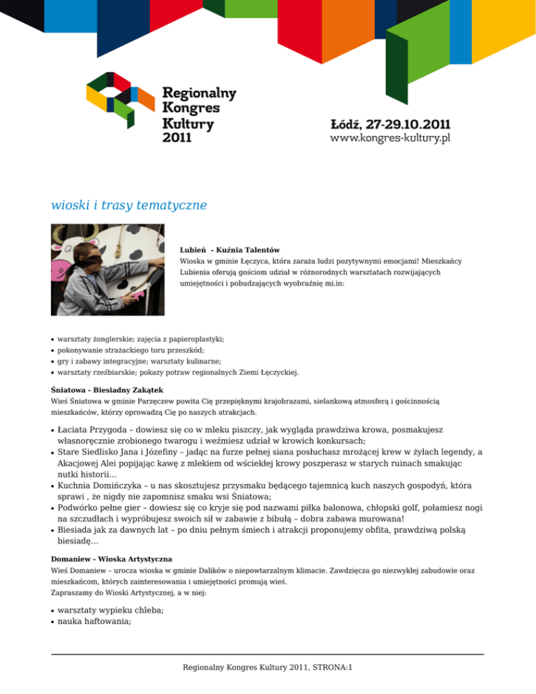 wioski i trasy tematyczne - Regionalny Kongres Kultury
