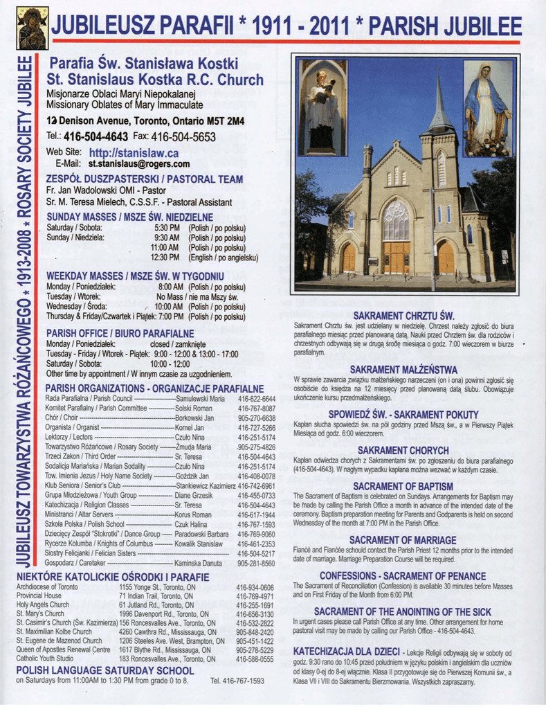 Proboszcz / Pastor - St. Stanislaus Kostka Church