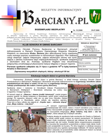 Zap r as za my d o lektu ry bezp łatn ego biuletynu inform acyjnego Bar ci any.pl, któr eg o te ma te m