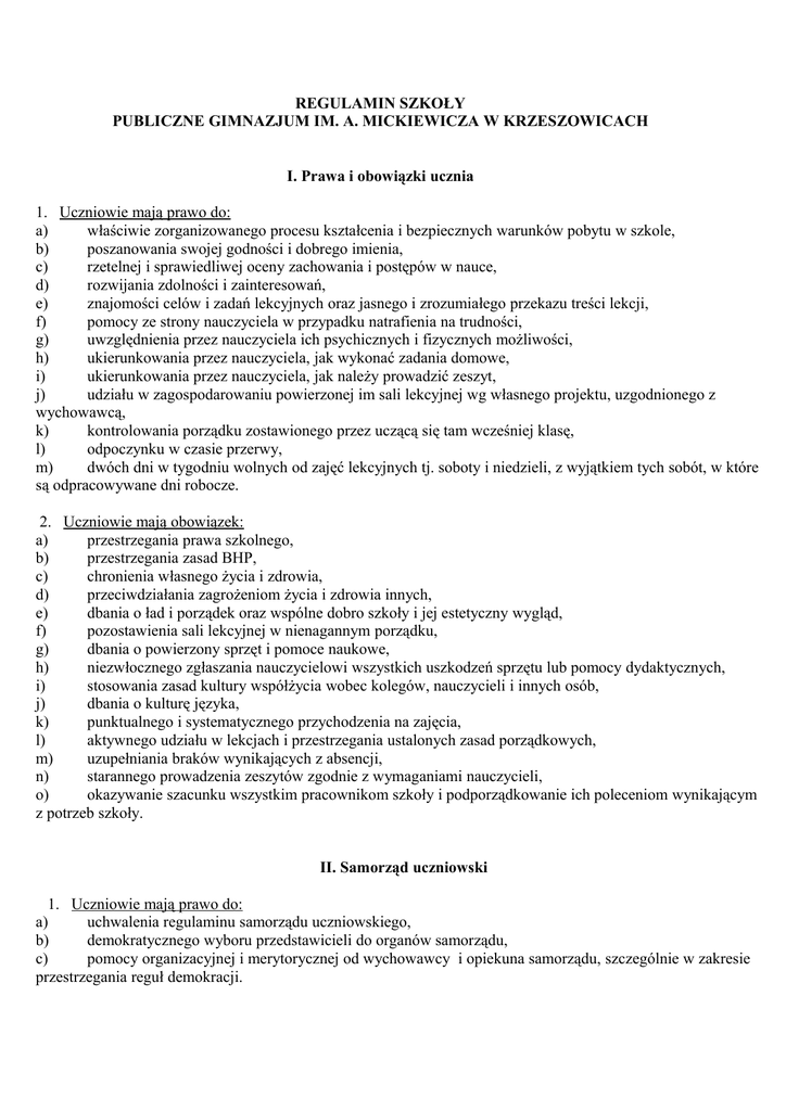 regulamin szkoły - Publiczne Gimnazjum im. Adama Mickiewicza w