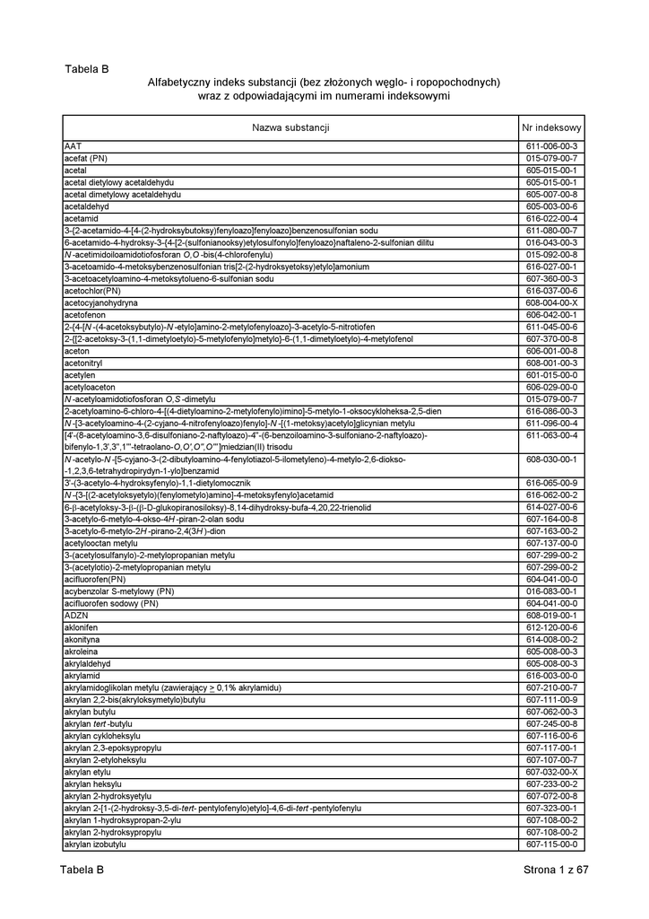 Alfabetyczny indeks substancji (bez złożonych węglo- i ropopochodnych)