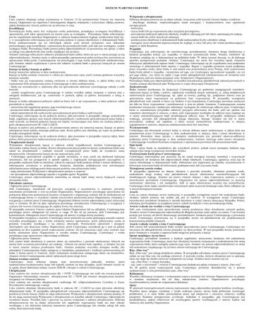 OGÓLNE WARUNKI CZARTERU Cena Cena czarteru obejmuje usługi wymienione w Umowie. O ile postanowienia Umowy nie stanowią inaczej, Organizator nie zapewnia Czarterującemu skippera, transportu i wyżywienia. Opłaty portowe, opłaty klimatyczne i koszty paliwa nie są wliczone w cenę. Kwalifikacje Prowadzącym barkę może być wyłącznie osoba pełnoletnia, posiadająca wymagane kwalifikacje i uprawnienia, jeśli takie uprawnienia na terenie rejsu są wymagane. Prowadzący barkę zobowiązany jest do wypełniania instrukcji Organizatora w zakresie bezpieczeństwa żeglugi, użytkowania łodzi itp., a w szczególności zobowiązany jest do pływania jedynie w rejonie określonym w dokumentach barki. Przed zaokrętowaniem ma on obowiązek okazać swój dowód tożsamości oraz dokument potwierdzający jego kwalifikacje i uprawnienia do prowadzenia barki, jeśli taki jest wymagany, osobie wydającej barkę. Prowadzący barkę ponosi pełną odpowiedzialność za powierzony mu sprzęt, a także za załogę oraz jakiekolwiek inne osoby znajdujące się na barce. Armator zastrzega sobie prawo odmowy przekazania barki osobie, która nie jest w stanie przyjąć za nią odpowiedzialności. Armator może w takim przypadku zaproponować pobyt na barce bez zezwolenia na opuszczanie barką portu. Czarterującemu nie przysługuje z tego tytułu jakiekolwiek odszkodowanie, jeśli Armator zakaże wypłynięcia z portu lub odmówi wydania barki z przyczyn leżących po stronie Czarterującego.. Kaucja za barkę i kaucja za paliwo Kaucje muszą być opłacone w dniu zaokrętowania. Kaucja za barkę zostanie zwrócona w całości po zakończeniu rejsu, jeżeli zostaną spełnione wszystkie poniższe warunki: - barka oraz jej wyposażenie zostaną zwrócone w równie dobrym stanie, w jakim barka oraz jej wyposażenie było przejmowane przez Czarterującego w dniu zaokrętowania, - barka nie uczestniczyła w zdarzeniu albo nie spowodowała zdarzenia wywołującego szkodę u osób trzecich, - zostały uregulowane przez Czarterującego w całości wszelkie opłaty związane z umową oraz z usługami dodatkowymi, jak np. cumowanie w portach, opłaty za paliwo, korzystanie z usług w marinach. Kaucja za barkę zabezpiecza pokrycie szkód na barce lub w jej wyposażeniu, a także pokrycie szkód powstałych w wyniku: - zniszczenia lub zagubienia sprzętu, jego niewłaściwego użycia, - porzucenia barki lub opóźnienia powrotu, - szkód (materialnych lub osobowych) spowodowanych przez barkę u osób trzecich. Czarterujący zobowiązuje się do pokrycia różnicy, jaka powstanie w przypadku takiego uszkodzenia barki, zagubienia sprzętu oraz innych szkód materialnych i osobowych spowodowanych przez barkę u osób trzecich, na których pokrycie kaucja nie będzie wystarczająca oraz które nie zostaną pokryte z polis ubezpieczeniowych OC i/lub CASCO. Kaucja za paliwo jest pobierana, o ile postanowienia umowy nie stanowią inaczej. Kaucja za paliwo zabezpiecza koszt paliwa zużytego podczas rejsu. Koszt paliwa jest określany po rejsie na podstawie licznika motogodzin silnika. Czarterujący zobowiązuje się do pokrycia różnicy, jaka powstanie w przypadku zużycia takiej ilości paliwa, która przewyższa wpłaconą kaucję na pokrycie paliwa. Ubezpieczenie kaucji Wykupienie ubezpieczenia kaucji w zakresie szkód wypadkowych zwalnia Czarterującego z obowiązku wpłaty kaucji za barkę. Kwota ubezpieczenia kaucji pokrywa koszty uszkodzenia barki oraz szkód na przedmiotach i osobach trzecich wyrządzonych przez barkę do wysokości sumy ubezpieczenia. Ubezpieczenie kaucji nie ma zastosowania, jeśli: - Czarterujący spowodował wypadek w sposób zawiniony, w tym, jeżeli nie dochował należytej ostrożności, lub nie postępował w sposób zgodny z regulacjami nawigacyjnymi (szczególnie w przypadku osadzenia barki na mieliźnie, szkód na osprzęcie barki podczas kolizji z innym obiektem), z informacjami zawartymi w podręczniku Armatora, dzienniku pokładowym oraz informacjami udzielonymi przez obsługę portu dotyczącymi podróży oraz pilotowania łodzi, - mają zastosowanie Wyłączenia z ubezpieczenia zawarte w umowie. - nie sporządzono odpowiedniego raportu z wypadku (patrz: Wypadek). Czarterujący ponosi odpowiedzialność materialną za szkodę bądź utratę rzeczy będących częścią ekwipunku łodzi. Odwołanie czarteru • Zgłoszone przez Czarterującego Jeśli Czarterujący, niezależnie od przyczyn, rezygnuje z uczestnictwa w czarterze, powinien natychmiast powiadomić o tym na piśmie Organizatora. Organizatorowi przysługuje uprawnienie do potrącenia faktycznie poniesionych kosztów związanych z organizacją czarteru lub do dochodzenia od Czarterującego kwoty w wysokości szkody rzeczywiście poniesionej przez Organizatora, związanej z rezygnacją z czarteru przez Czarterującego. Organizator dokona zwrotu odpowiedniej części uiszczonej ceny w terminie 30 dni od daty wpłynięcia pisemnego oświadczenia Czarterującego o rezygnacji z czarteru lub wezwie Czarterującego do zapłaty kwoty mu należnej. W przypadku zawarcia Umowy czarteru poza lokalem Organizatora lub na odległość, Czarterującemu przysługuje prawo odstąpienia od umowy w ciągu 10 dni od jej zawarcia, jeśli Czarterujący jest konsumentem. Odstąpienie przez Czarterującego od umowy wymaga formy pisemnej. W przypadku rezygnacji z czarteru, Czarterujący może przenieść na osobę spełniającą warunki czarteru wszystkie przysługujące mu z tytułu niniejszej umowy uprawnienia, jeżeli jednocześnie osoba ta przejmie wszystkie wynikające z tej umowy obowiązki. Przeniesienie uprawnień i przejęcie obowiązków jest skuteczne wobec Organizatora, jeżeli Czarterujący zawiadomi go o tym na piśmie najpóźniej na dwa tygodnie przed rozpoczęciem czarteru. Za nie uiszczoną część ceny czarteru oraz koszty poniesione przez Organizatora w wyniku zmiany Czarterującego, Czarterujący i osoba przejmująca jego 