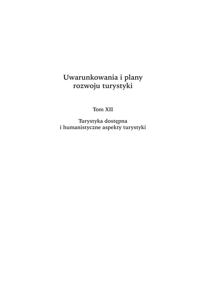 Uwarunkowania i plany rozwoju turystyki Tom XII Turystyka dostępna i humanistyczne aspekty turystyki Redaktor serii: Zygmunt Młynarczyk UNIWERSYTET IM. ADAMA MICKIEWICZA W POZNANIU SERIA TURYSTYKA I REKREACJA – STUDIA I PRACE NR 12 Uwarunkowania i plany rozwoju turystyki Tom XII Turystyka dostępna i humanistyczne aspekty turystyki Praca zbiorowa pod redakcją Zygmunta Młynarczyka i Aliny Zajadacz BOGUCKI WYDAWNICTWO NAUKOWE POZNAŃ 2014 ABSTRACT. Zygmunt Młynarczyk, Alina Zajadacz (eds), Uwarunkowania i plany rozwoju turystyki. Tom XII – Turystyka dostępna i humanistyczne aspekty turystyki [Tourist development: determinants and plans. Volume XII – Accessible tourism and humanistic aspects of tourism]. Bogucki Wydawnictwo Naukowe, Poznań 2014. Seria Turystyka i Rekreacja – Studia i Prace nr 12. Pp. 164, tables and figures. ISBN 978-83-7986-060-9. ISSN 2080-6795. Texts in Polish. This volume contains a diverse collection of articles that relate to social and human aspects of tourism such as: “Accessible tourism” for people with different disabilities, cultural tourism (based on literary, film and theatre fiction) and address many other problems, such as: diversification of tourist values of Wielkopolska, tourist activity of selected social groups, tourists’ (consumers) rights on the tourism market and active tourism. Zygmunt Młynarczyk – Uniwersytet im. Adama Mickiewicza w Poznaniu, Wydział Nauk Geograficznych i Geologicznych, Katedra Turystyki i Rekreacji, ul. Dzięgielowa 27, 61-680 Poznań, e-mail: [email protected] Alina Zajadacz – Uniwersytet im. Adama Mickiewicza w Poznaniu, Wydział Nauk Geograficznych i Geologicznych, Katedra Turystyki i Rekreacji, ul. Dzięgielowa 27, 61-680 Poznań, e-mail: [email protected] Recenzent: dr hab. Małgorzata Durydiwka © Copyright by Katedra Turystyki i Rekreacji Wydziału Nauk Geograficznych i Geologicznych Uniwersytetu im. Adama Mickiewicza, Poznań 2014 Projekt okładki: Jarosław Bogucki Fotografia: Alina Zajadacz ISBN 978-83-7986-060-9 ISSN 2080-6795 Bogucki Wydawnictwo Naukowe ul. Górna Wilda 90, 61-576 Poznań www.bogucki.com.pl e-mail: [email protected] Wydanie I Druk i oprawa: Uni-druk Spis treści Maria Zamelska, Beata Kaczor Turystyka osób niepełnosprawnych – mit czy rzeczywistość? . . . . . . . . . . . . 9 Alina Zajadacz Nastawienie przyszłych pracowników sektora usług turystycznych do niepełnosprawnych klientów. Studia przypadku z Polski i Rosji . . . . . . . . 31 Anna Kołodziejczak Jaki powinien być przewodnik turystyczny – dostosowany do potrzeb osób niepełnosprawnych? . . . . . . . . . . . . . . . . . . . . . . . . . . . . . . . . . . . . . . . . . . . . 45 Barbara Antczak-Górka Oslo w powieściach Jo Nesbø jako motyw dla turystyki literackiej . . . . . . . . 55 Daria Kubisz, Paweł Matulewski, Mirosław Makohonienko Turystyka filmowa w województwie kujawsko-pomorskim . . . . . . . . . . . . . . 65 Klaudiusz Święcicki Turystyka teatralna jako forma turystyki kulturowej . . . . . . . . . . . . . . . . . . . 77 Krzysztof Piotrowski, Ilona Potocka Zróżnicowanie walorów krajoznawczych Wielkopolski . . . . . . . . . . . . . . . . . 91 Magdalena Kugiejko Aktywność turystyczno-rekreacyjna poznańskich studentów turystyki i rekreacji . . . . . . . . . . . . . . . . . . . . . . . . . . . . . . . . . . . . . . . . . . . . . . . . . . . . 107 Ewa Stroik Niemiecki rynek turystyczny – turystyka wyjazdowa versus turystyka przyjazdowa . . . . . . . . . . . . . . . . . . . . . . . . . . . . . . . . . . . . . . . . . . . . . . . . . . 119 Agata Kosińska Ochrona praw konsumenta na polskim rynku usług turystycznych. Determinanty prawne określające pozycję rynkową konsumenta . . . . . . . . . 133 Grzegorz Borkowski, Michał Kaczmarek Fenomen turystyki górskiej. Koncepcja utworzenia górskiego międzynarodowego szlaku turystycznego w oparciu o szczyty Korony Europy . . . . . . . . . . . . . . . . . . . . . . . . . . . . . . . . 145 Janusz Skoczylas Jan Amos Komeński (1592–1670), wielki pedagog i prekursor turystyki . . . 159 „«Turystyfikacja» jest […] kolejną epoką po industrializacji i urbanizacji oraz «kulturze masowej» i «informatyce», w cywilizacyjnym rozwoju współczesnego świata. Nie ulega już dziś najmniejszej wątpliwości, że zjawisko nazywane umownie, ale dość powszechnie, turystyką ma charakter bardzo złożony; dotyczy ono bowiem różnych aspektów ruchliwości przestrzennej współczesnego człowieka.” (S. Liszewski, 1995, s. 87)1 Tom XII serii Turystyka i Rekreacja – Studia i Prace poświęcony został humanistycznym aspektom turystyki, które determinują duże zróżnicowanie jej form. W jego pierwszej części kilka artykułów porusza aktualne problemy społecznie, związane z „turystyką dostępną” dla osób z różnymi rodzajami niepełnosprawności. Opracowania te mają wymiar teoretyczny, poznawczy, a nade wszystko praktyczny – pod względem możliwości zastosowań w celu lepszego dostosowania oferty turystyczno-rekreacyjnej, systemu informacji turystycznej oraz obsługi ruchu turystycznego do potrzeb osób z niepełnosprawnością. Kolejne artykuły odnoszą się do sprecyzowanych zainteresowań, związanych z turystyką kulturową, opartą na bazie fikcji literackiej, filmowej oraz teatralnej. Wskazują tym samym na nieograniczone możliwości kreowania turystycznych walorów kulturowych, także w miejscach o mało spektakularnych realiach, poprzez narrację wyrażoną w formach sztuki. W końcowej części tomu zamieszczono opracowania o zróżnicowanej tematyce, dotyczącej walorów turystycznych Wielopolski, aktywności turystycznej wybranych grup społecznych, praw turystów (konsumentów) na rynku turystycznym oraz turystyki aktywnej (górskiej). Ostatni z artykułów odnosi się do historii, związanej z działalnością wybitnego pedagoga, ale także wędrowca Jana Amosa Komeńskiego, który przez wiele lat żył i tworzył 