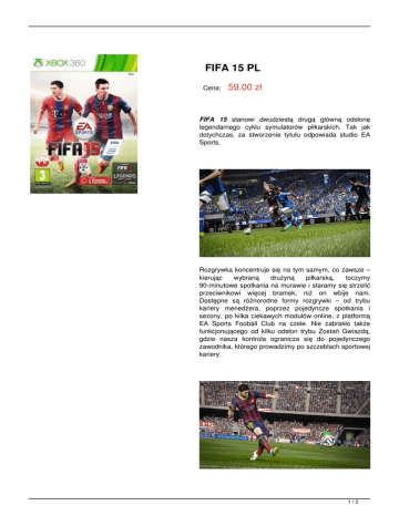 FIFA 15 PL Cena: 59.00 zł FIFA 15 stanowi dwudziestą drugą główną odsłonę legendarnego cyklu symulatorów piłkarskich. Tak jak dotychczas, za stworzenie tytułu odpowiada studio EA Sports. Rozgrywka koncentruje się na tym samym, co zawsze – kierując wybraną drużyną piłkarską, toczymy 90-minutowe spotkania na murawie i staramy się strzelić przeciwnikowi więcej bramek, niż on wbije nam. Dostępne są różnorodne formy rozgrywki – od trybu kariery menedżera, poprzez pojedyncze spotkania i sezony, po kilka ciekawych modułów online, z platformą EA Sports Fooball Club na czele. Nie zabrakło także funkcjonującego od kilku odsłon trybu Zostań Gwiazdą, gdzie nasza kontrola ogranicza się do pojedynczego zawodnika, którego prowadzimy po szczeblach sportowej kariery. 1/2 Rzecz jasna, nie zabrakło pewnych zmian względem FIFA 14. Dołożono starań, by jeszcze bardziej zbliżyć się do ideału, jeśli chodzi o realizm spotkań piłkarskich – dodano nowe zestawy animacji odzwierciedlających reakcje zawodników na boisku, zmieniono także sposoby prezentacji pozaboiskowej oprawy spotkań. Twórcy zaserwowali nam także większą ilość opcji taktycznych, umożliwiających m.in. sławne „parkowanie autobusu” czy też przetrzymywanie piłki w narożnikach boiska. Zauważalnie poprawiono też zachowanie obrony, która jest znacznie bardziej nastawiona na wspólną grę całej formacji aniżeli indywidualne pojedynki z przeciwnikami. Wyeliminowano także pewne błędy techniczne, znane z poprzedniczki, oraz dodano szereg nowych licencji ligowych czy drużynowych. Zobacz wideo: Szczegóły wersja językowa POLSKA 2/2 Powered by TCPDF (www.tcpdf.org)