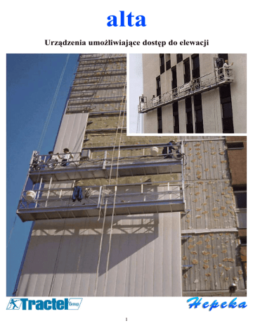alta Urządzenia umożliwiające dostęp do elewacji 1 Platformy ALTA posiadają: ➢ modułowy system umożliwiający rozbudowę ➢ możliwość wyboru rodzaju wciągarek dzięki temu są ekonomiczną i opłacalną inwestycją budowa urządzeń malowanie prace izolacyjne mycie okien odnawianie fasady 2 łatwość w sterowaniu i kontroli duża ładowność bezpieczna i solidna konstrukcja izolowanie i nakładanie paneli wykończeniowych sprawdzanie i konserwacja mostów prace montażowe wewątrz siłowni prace napowietrzne budowa ściany osłonowej odnawianie chłodni kominowych 3 Standardowe modele ALTA “L” Standardowy “lekki” model używany podczas malowania, odnawiania, wykańczania, uszczelniania i prac reperacyjnych itp. Maksymalna długość między końcowymi strzemionami wynosi 12m lub 15m ze strzemionami typu C lub strzemionami wewnętrznymi. Szerokość wewnątrz platformy 0,6m. górny odbojnik lina bezpieczeństwa górny wyłącznik krańcowy ALTA “S” Standardowy model dla “ciężkich” prac na fasadzie, kominach, silosach, mostach itp. Maksymalna długość między końcowymi strzemionami wynosi 12m lub 15m ze strzemionami typu C lub 18m ze strzemionami wewnętrznymi. Szerokość wewnątrz platformy 0,68m. centralna skrzynka kontrolna, lub skrzynka kontrolna do każdej wciągarki lina nośna BLOCSTOP urządzenie bezpieczeństwa strzemie końcowe wciągarka TIRAK ALTA platforma ze strzemionami na końcach kółko do jazdy po fasadzie 2 metrowy standardowy moduł platformy 3 metrowy standardowy moduł platformy ALTA platforma ze strzemionami typu C* ALTA platforma ze strzemionami wewnętrznymi* * platformy ALTA ze strzemionami typu C lub ze strzemionami wewnętrznymi zapewniają doskonałą stabilność. Obszar pracy jest zupełnie wolny i obsługa narożników budynku jest łatwa. Opcje: – nawijarka liny nośnej – drążek antykolizyjny – zespół 4 kółek samonastawiających do przemieszczania platformy po podłożu – moduły platformy z zatrzaskowymi drzwiami podczas użycia dwupoziomowej platformy – łącznik i drabina podczas użycia dwupoziomowej platformy 4 Łatwa kontrola i zarządzanie dzięki modułowej konstrukcji Platformy ALTA są wytwarzane z aluminum jako moduły o długości 2m i 3m. Są wyposażone w strzemiona na końcach platformy. Możliwe jest budowanie zgodnie z wymaganiami. Ładowność dla platformy ALTA L wynosi 120kg/mb i 140 kg/mb dla platformy ALTA S. Platformy ALTA są wyposażone we wciągarki TIRAK (serii: X-300, X-500, X-700 lub T-1000). Na niższych wysokościach ręczne wciągarki takie jak SCAFOR lub TIRFOR są idealnym alternatywnym rozwiązaniem. 2m platforma ALTA ze strzemionami na końcach platformy 11m platforma ALTA ze strzemionami wewnętrznymi ... i ekonomicznym rozwiązaniom Pomosty SOLO i SOLSIT są lekkie i stabilne. Pomosty te są przeznaczone dla jednego pracownika i pozwalają na szybki dostęp do elewacji np.: w trakcie kontroli, konserwacji, mycia i prac instalacyjnych. Jednoosobowe krzesełko SOLIST i standardowy model platformy SOLO są zawieszone i podnoszone za pomocą wciągarki TIRAK. Opcjonalnie platforma SOLO może być wyposażona w ręczną wciągarkę SCAFOR. Jednoosobowa platforma SOLO 5 Jednoosobowe krzesełko z elektryczną wciągarką Platformy dopasowane do wymagań kilenta - platforma ze specjalnymi strzemionami dopasowana do nachylenia powierzchni po której się porusza - ALTA o zwiększonej sztywności, długość 42m. Używana do sprawdzania i konserwacji wiaduktów i estakad - platformy używane na masztach. Standardowe odcinki są połączone z odcinkami kątowymi dzięki czemu możliwe jest okrążenie całego masztu Jeżeli standardowe platformy nie spełniają Państwa oczekiwań oferujemy również urządzenia w wykonaniu niestandardowym które uwzględniają specyficzne warunki pracy. - swobodnie zawieszona platforma służąca do sprawdzania i konserwacji lin odciągowych na moście wiszącym (we Francji). Wciągarka TIRAK i zasilacz sieciowy zamontowane są na platformie - system do mycia wewnętrznej i zewnętrznej strony szklanego dachu – specjalnie zaadoptowane i zaprojektowane do budynku (Muzeum Wiedzy o Naturze, Houston/USA) 6 Systemy wysięgników Istnieje wiele aplikacji w których mogą być zastosowane wysięgniki DELTA. System ten jest szczególnie interesujący ponieważ wysięgniki można przemieszczać wzdłuż krawędzi dachu, można je łatwo postawić i rozłożyć. Jeżeli attyka jest odpowiednia i wystarczająco wytrzymała mogą być na niej zainstalowane “zaciskające się wysięgniki” firmy SECALT (nieruchme lub przejezdne). Inne rozwiązania uwzględniające wymagania poszczególnych budynków również mogą być rozpatrywane. Wysięgniki DELTA z przeciwwciężarkami zapewniają bardzo dobrą stabilność urządzenia. Liczba stosowanych przeciwobciążników obliczana jest według następującej formuły: Systemy specjalne gdzie: N- liczba 25kg obciążników (przeciwwagi) A- część wystająca w metrach (max 1m) B- odległość między podporami F- nominalna ładowność wciągarki = maksymalny dopuszczalny obciążenie wysięgnika K- współczynnik bezpieczeństwa przeciw wywróceniu 25kg- masa jednego obciążnika Znacznie oszczędzając czas systemy RAILSCAF i SPACE CLIMA wyposażone są w szynę pozwalają na szybkie i precyzyjne przemieszczanie platformy. Proste i niezawodne systemy RAILSCAF i SPACE CLIMA mogą również być wykonane jako stała instalacja do konserwacji budynku, jeżeli budynek dotychczas nie jest w nią wyposażony. - standardowy wysięgnik DELTA - specjalny system wysięgnika z platformą umożliwiający dojście za pomocą drabiny do poziomu z którego jest sprawdzany wiadukt 7 Wybór wyposażenia Wciągarka TIRAK jest standardowym wyposażeniem platform ALTA Zawieszone systemy dostępu do elewacji jako: istotny element dzisiejszych budynków i konstrukcji TIRAK wciągarka TIRFOR przeciągarka napędzana ręcznie l