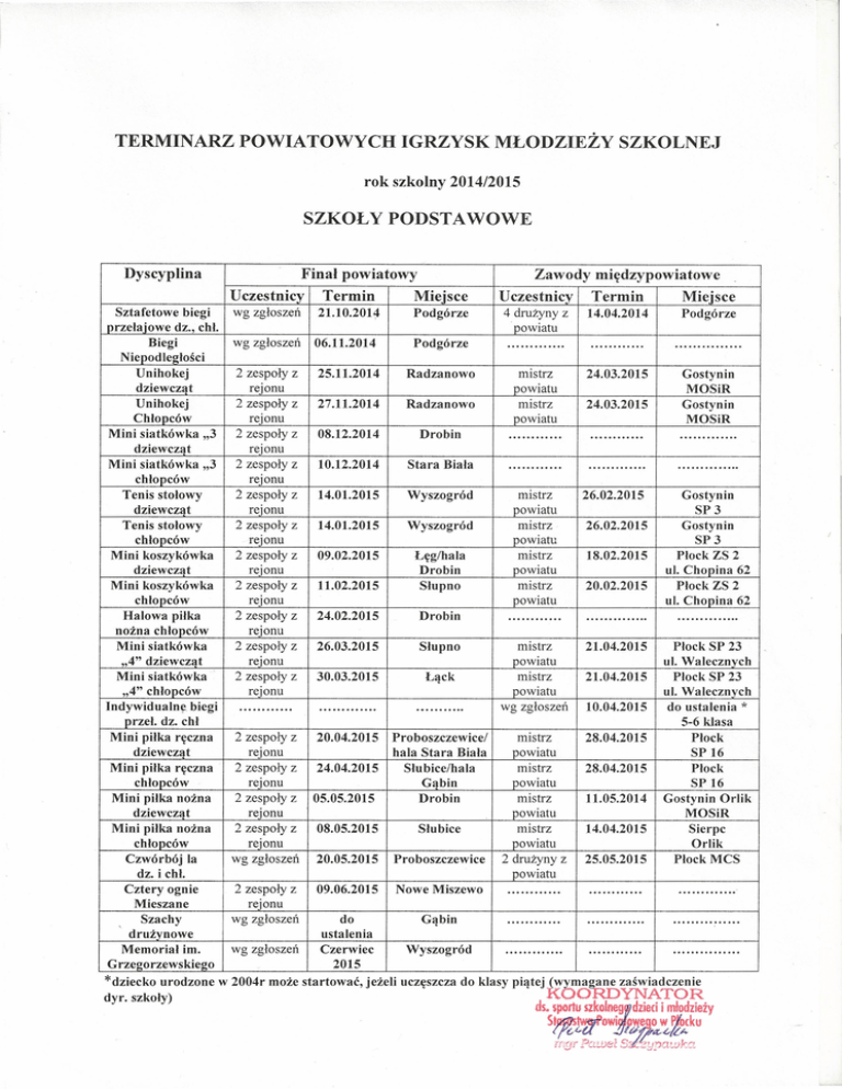 terminarz powiatowych igrzysk młodzieży szkolnej szkoł y