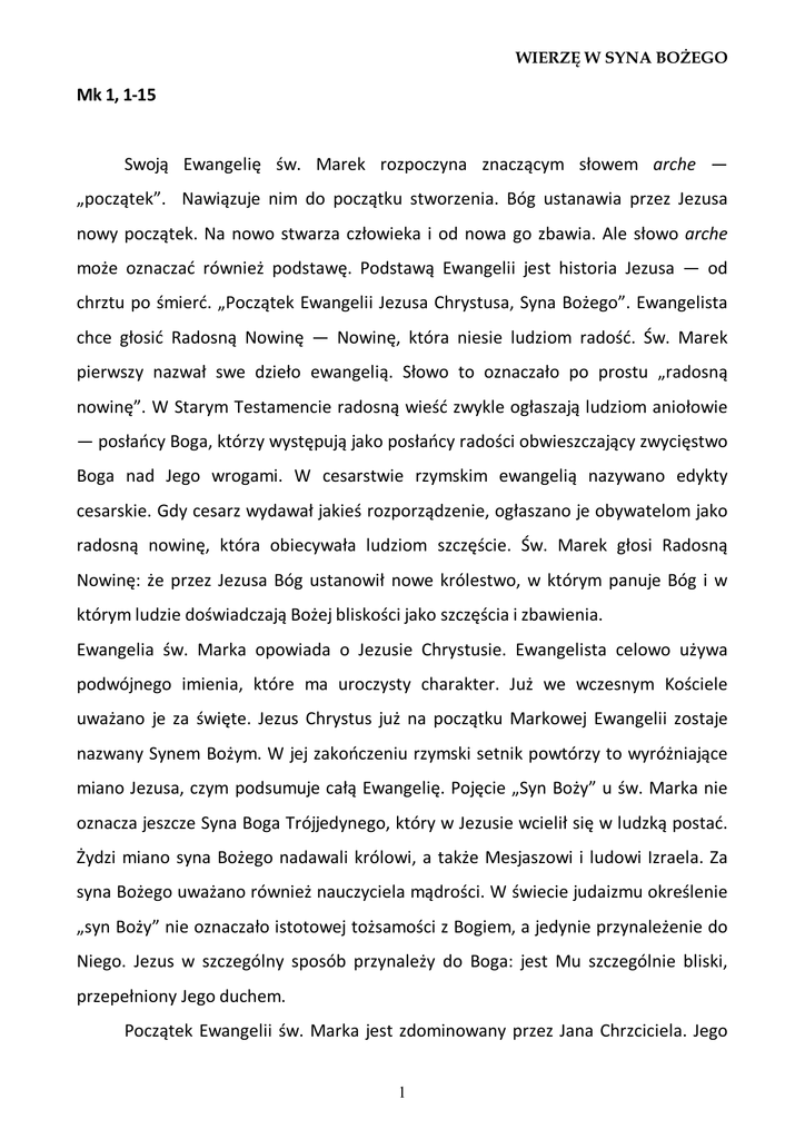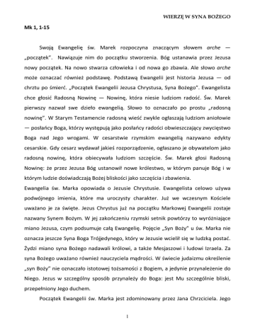Mk 1, 1-15 Swoją Ewangelię św. Marek rozpoczyna znaczącym