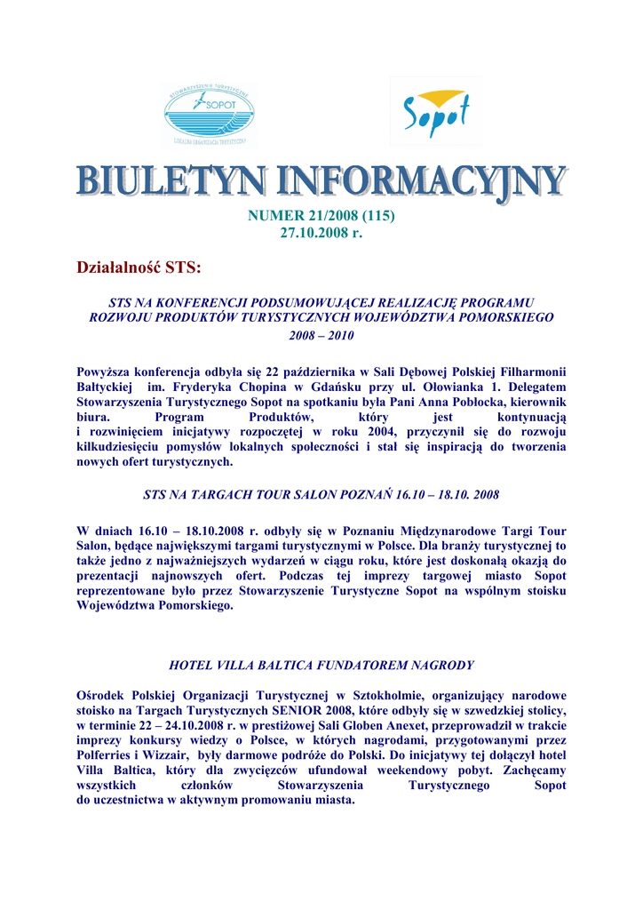 pobierz biuletyn - Stowarzyszenie Turystyczne Sopot