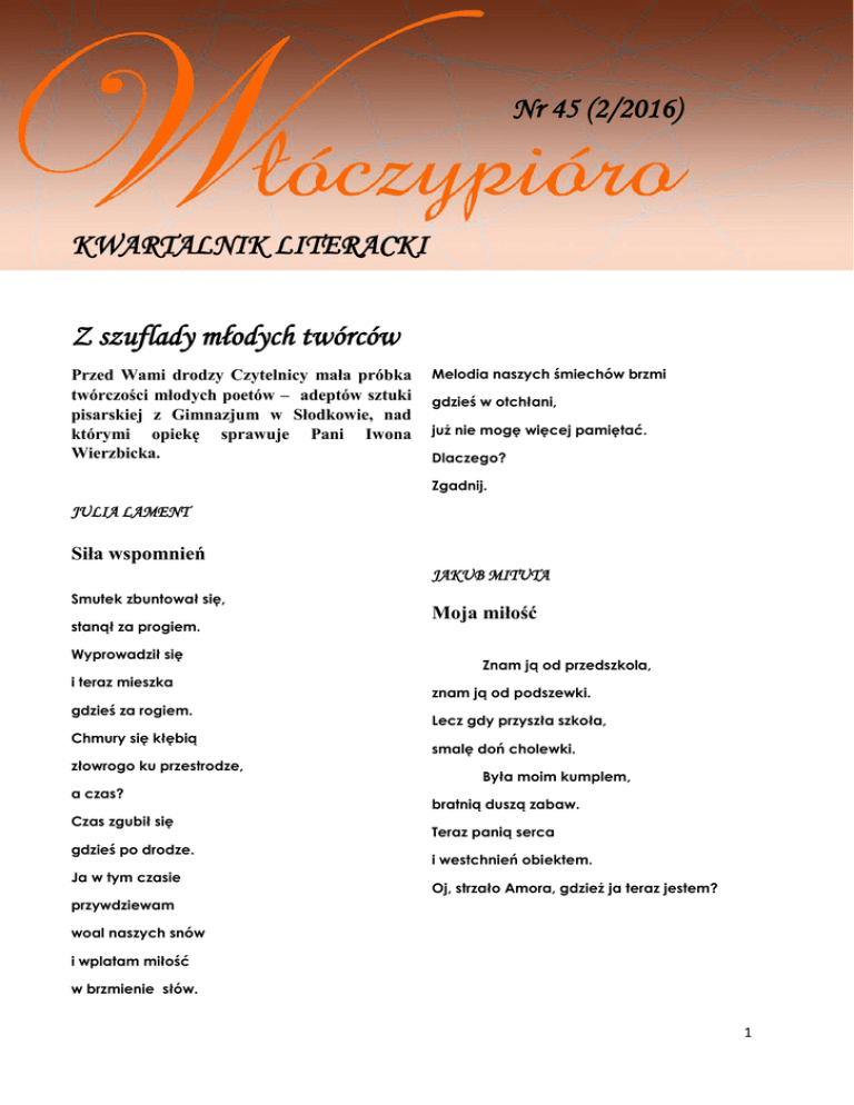Nr 45 (2/2016) KWARTALNIK LITERACKI Z szuflady młodych twórców