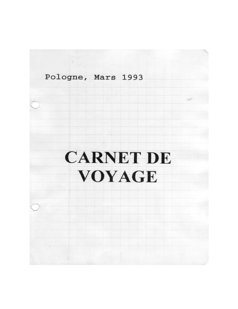 Tłumaczenie Polska, marzec 1993r. ZAPIS PODRÓŻY PRZEDMOWA Nie jest to pamiętnik, album zdjęć mających pożółknąć, które oglądalibyśmy wiele lat potem, płacząc lub śmiejąc się. Nie jest to także reportaż, który chciałby, zachowując minimum obiektywizmu, opisać innym, widzom lub czytelnikom, kraj, przebytą drogę, wydarzenia. Jest to raczej dziennik pokładowy, zapis podróży, w którym spróbowaliśmy opisać wrażenia i obrazy, zgłębić je, zrekonstruować tak, aby nabrały sensu tak dla nas i dla innych. INWENTARZ Przed wyjazdem przystąpiliśmy do inwentaryzacji. Każdy przybył z powiedzeniem, znakiem lub przedmiotem, z czymkolwiek, co związane byłoby z tym krajem, którego nikt, bądź prawie nikt spośród nas, nie znał. Genevieve- przyniosła bursztynowy klejnot, książkę Kantora i znaczek „Solidarności” Maia- mówi o liście od Olgi, piastunki swojej matki, uciekinierki do Francji po wojnie. Ona mówiła wiele o Polsce. Dzisiaj mieszka w Kanadzie. Jej list pełen jest błędów gramatycznych. Violaine - znalazła bursztyn, butelkę wódki i przyklejoną do oszklonych drzwi pocztówkę od Teresy, przedstawiającą ulicę w Gdańsku nocą. Emmanuelle- przyniosła wódkę i klejnot w złocie, który należy do jej matki.Przyjaciółka, która znała Polskę, powiedziała jej, że znajdzie tam[w Polsce] biżuterię w podobnym stylu. Valerie : opisuje figurki ze stajenki polskiej, kolekcję znaczków i pocztówek (niektóre przedstawiają polski krajobraz). Jej babka, która ma 92 lata, dużo podróżuje i przysyła jej korespondencję z czterech stron świata. Anne-Lise : rozprawia o czerwieni i zieleni, o kobietach, które noszą chusty, o paradoksach: prześladowania-wolność, bieda-skłonność do ucztowania; o wsi, chlebie, nadziei, wódce, ale także: Jan Paweł II i powiedzenie „pijany jak Polak”. Claire : przywołuje również to powiedzenie, ale także: getto w Warszawie, podzielony, upokorzony i opuszczony naród, papieża, komunizm, zimno, rolnictwo, Kopernika, Marię Curie i wódkę. Olivier : wymienia wódkę, Karola Wojtyłłę, ojca Wrzesińskiego, Chopina. Caroline : wybrała „Nieskończony stop ”Esther Hantzig” i kilka pocztówek ze swojej kolekcji. Isabelle : dołączyła biografie Witkiewicza, wódkę i biografię Kantora. Mathias : wybrał dwie różne wódki(„Żubrówkę „ z źdźbłem trawy i „Goldwasser” z wiórkami złota) i znaczek „Solidarności”. - 2Corinne : znalazła tak samo wódkę, ale również dżokejkę, zimno, śnieg, ubóstwo, szarość, racjonowanie żywności, Kantora i Witkiewicza. Magali : wybrała wódkę, biżuterię ze srebra, (bransoletę i kolię), ubóstwo, zimno, zboża, Kantora i Witkiwicza. Emmanuelle : zapamiętała Chopina, wódkę, zimno, szarość, obozy, gdzie byli przetrzymywani Żydzi. Juliette : przywołuje Anitę Dittersdorf, polską kuzynkę swojego dziadka. Jest Żydówką, uciekinierką od 15-tego roku życia. Dzisiaj ma 60 lat i czasami przyjeżdża do swojego kraju. Wymienia również piosenkarkę Hannę Bea Tekielski, piosenkarkę porzuconą przez swego ojca w wieku 2 lat; okrągłą serwetkę, o której jej matka mówiła, że pochodzi z Polski (ale nikt nie wie, w jaki sposób), „Żubrówkę” ze źdźbłem trawy. WRAŻENIA ( pierwsze) Moje pierwsze wrażenie z tego kraju, to puste okolice , szare niebo. Teraz ciepło ludzi, mały płomień, rozjaśnia cały ten pejzaż . Caroline Znalazłszy się w Polsce, miałam zabawną niespodziankę. Odniosłam dziwne wrażenie: obraz kraju w trakcie stawania się. To jak sen, który się urzeczywistnia, to wstrząsające, prawie magiczne. Claire Moja matka opowiedziała mi historię, która działa się w sali szkoły dla dochodzących. Wyobraziłam sobie to pomieszczenie, ale nigdy go nie odnalazłam . Kiedy przyszłam na przedstawienie do sali w wągrowieckim liceum, natychmiast rozpoznałam pomieszczenie, które, wyobrażałam sobie wcześniej: drzwi, mikrofon dokładnie w tym samym miejscu; stół reżyserski na górze itd. Tak bardzo długo szukałam tego miejsca w Grenoble, a odnalazłam je w Polsce, gdzie przedtem nie byłam. Violaine Ten płaski pejzaż, smutny i ponury, nie odzwierciedlający mentalności ludzi; są ciepli i gościnni. Dla nich jesteśmy ich gośćmi, zajmują się nami tak, jak byśmy stanowili część ich rodziny. Po dyskusji z nimi można odkryć prawdziwą wartość rzeczy. Valerie, Corinne Widnokrąg płaski jak dłoń, bladoszare niebo od samego rana, dym z fabryk, pudełka domów, węgiel i popiół: przyjazd do Polski „ rzuca mnie” na Północ ( region Francji, ok.Lille) do kraju mojego dzieciństwa, tam, gdzie tylu Polaków schroniło się lub odeszło na wygnanie. Denis Francja lat 20-tych lub film z lat 50-tych. Czerń i biel. Dla nas klisze i odblaski. Przesuwanie się filmu, na którym ludzie przybywają lub odchodzą w miejsca jeszcze nieznane. Dekoracje postawione bez estetycznej jednolitości. Słowiańskie domy albo budynki ZUP.Niespójność. -3Jest jeszcze Kantor: Wszystko miesza się w chłodzie, okaleczonych ciałach, drewnianych wózkach, zapachach, krzyżach. Genevieve, Olivier, Michael Państwo manekinów produkowanych w skrajnej przeciętności: - zakłada się firanki tylko dlatego, że tak trzeba, nawet jeśli są to „ ścierki”, zakłada się, bo w domu powinny być zasłonki - wszędzie sklepy i kioski - pudełka po jogurtach do zatykania dziur w suficie - dna butelek używane do zbierania wody, która wydostaje się z podziurawionego dachu baru, - kilka szyldów reklamowych, żeby było tak, jak w dużym mieście - sztuczny kwiat dla dekoracji na restauracyjnym stoliku - kelnerki w małych, białych, koronkowych na brzegach fartuszkach, jak w prawdziwych restauracjach, - stacje benzynowe z dwoma lub trzema pompami jak w dużych stacjach obsługi, - w witrynach sklepowych rozłożono kilka towarów, tak jak w dużych sklepach Wszystko małe i w małej i