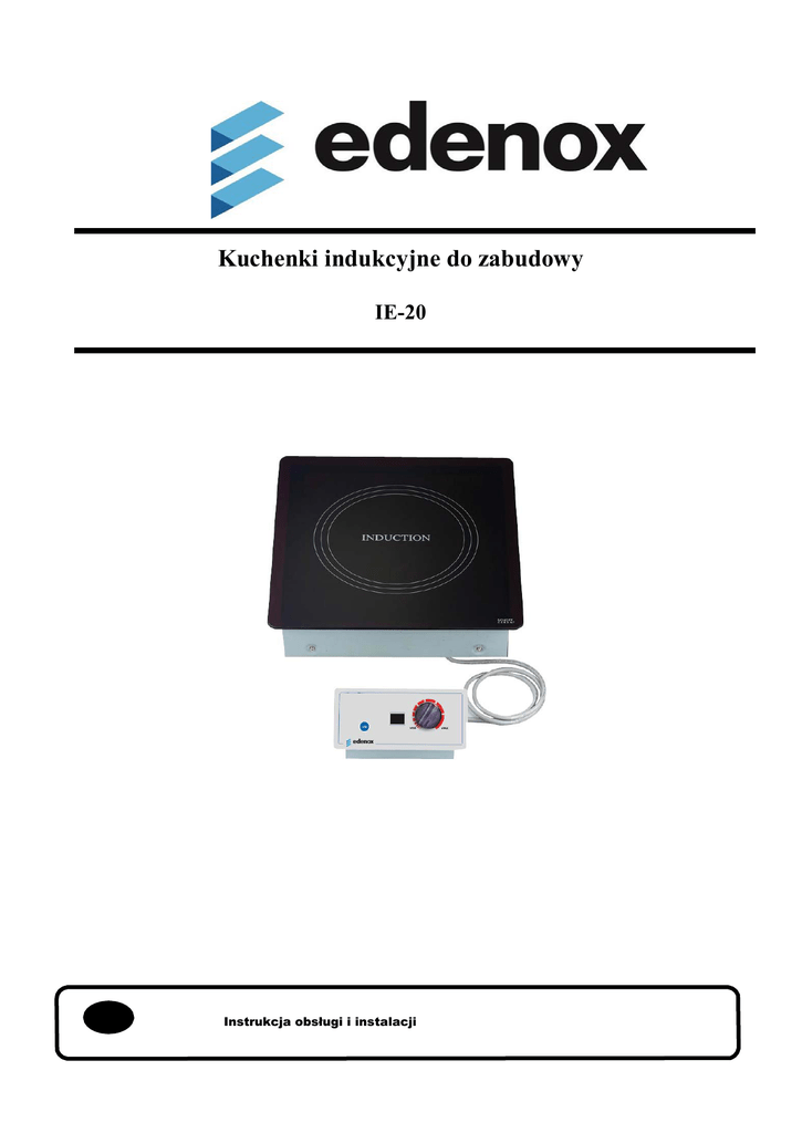 Kuchenki indukcyjne do zabudowy IE-20 Instrukcja obsługi i instalacji PRZED PRZYSTĄPIENIEM DO EKSPLOATACJI URZĄDZENIA NALEŻY ZAPOZNAĆ SIĘ Z CAŁĄ TREŚCIĄ INSTRUKCJI 1. Do zasilania płyty stosować niezależne gniazdko elektryczne 230V 2. NIE zasłaniać ścianki z wlotem powietrza, ponieważ może to spowodować przegrzewanie się urządzenia 3. Stosować patelnie i naczynia o średnicy 14 cm lub większej. Zalecamy stosowanie naczyń o średnicy mniejszej niż 26 cm. Listę odpowiednich i nieodpowiednich naczyń kuchennych przedstawiono na następnej stronie. 4. NIE dotykać gorącej powierzchni płyty ceramicznej. UWAGA: Płyty ceramiczne same nie wytwarzają ciepła podczas gotowania, jednak ciepło z garnka lub patelni powodować będzie nagrzewanie się powierzchni płyty ceramicznej! 5. NIE ustawiać na płycie i nie rozgrzewać pustych garnków ani patelni. Podgrzewanie pustych naczyń spowoduje automatyczne zadziałanie zabezpieczenia przed przegrzaniem, co z kolei spowoduje wyłączenie się płyty. 6. Płytę kuchenną należy zamontować na poziomej powierzchni, w odległości co najmniej 10 cm od ściany lub innych przedmiotów, aby zapewnić prawidłowa wentylację. 7. NIE kłaść żadnych przedmiotów ani przyborów na części z wlotem powietrza. Grozi to porażeniem prądem elektrycznym. 8. Aby zapobiec przypadkom porażenia prądem elektrycznym, nie zanurzać urządzenia ani jego przewodu w wodzie, nie ustawiać go w pobliżu wody ani innych płynów. 9. Podczas korzystania z płyty kuchennej w obecności dzieci należy zachować ścisły nadzór i kontrolę. 10. NIE używać płyty kuchennej, jeżeli została ona jakkolwiek uszkodzona lub jeżeli nie funkcjonuje prawidłowo. W razie konieczności odesłać urządzenie do najbliższej autoryzowanej placówki serwisowej do sprawdzenia lub naprawy. 11. Stosowanie akcesoriów niezalecanych przez producenta może być przyczyną obrażeń 12. Przewód zasilający należy umieścić z dala od źródła ciepła 13. NIE umieszczać płyty kuchennej przy, ani w pobliżu odkrytych źródeł ognia, piekarników, ani w innych miejscach, w których występują wysokie temperatury 14. NIE podgrzewać na płycie kuchennej zamkniętych puszek, ponieważ grozi to ich eksplozją. 15. NIE przesuwać płyty kuchennej podczas gotowania lub gdy ustawione na niej naczynia są gorące. 16. Po ostygnięciu płyty kuchennej odłączyć przewód zasilający i oczyścić ją z następujący sposób: • PŁYTA CERAMICZNA: przetrzeć miękką szmatką lub za pomocą łagodnego środka czyszczącego, nieposiadającego właściwości ściernych • KORPUS: przetrzeć elementy sterujące miękką szmatką lub użyć łagodnego środka czyszczącego 17. NIE stosować płyt indukcyjnych do innych celów niż przewidziane przez producenta 18. W przypadku, gdy płyta ma nie być używana przez dłuższy czas, odłączyć ja od sieci. 19. Podczas przechowywania NIE ustawiać żadnych przedmiotów na płycie 20. Podczas korzystania z płyt indukcyjnych (z gładką płytą) do płyty nie powinny zbliżać się osoby posiadające wszczepiony stymulator serca. Osoby takie powinny pozostawać w odległości co najmniej 60 cm od elementów grzejnych 2 | edenox.pl ZACHOWAĆ NINIEJSZĄ INSTRUKCJĘ DO WYKORZYSTANIA W PRZYSZŁOŚCI! NACZYNIA KUCHENNE NADAJĄCE SIĘ DO STOSOWANIA NA INDUKCYJNYCH PŁYTACH KUCHENNYCH NACZYNIA KUCHENNE NADAJĄCE SIE DO STOSOWANIA 1. 2. 3. 4. Naczynia żelazne Naczynia żeliwne Naczynia ze stali nierdzewnej Naczynia emaliowane Wszystkie garnki i naczynia musza mieć dno z materiałów ferromagnetycznych Wszystkie garnki i naczynia muszą mieć płaskie dno Wszystkie garnki i naczynia muszą mieć średnicę w zakresie od 12 do 26 cm NACZYNIA KUCHENNE NIENADAJĄCE SIE DO STOSOWANIA 1. 2. 3. 4. 5. 6. 7. 8. Naczynia o średnicy mniejszej niż 5 cm Patelnie ze stali nierdzewnej z dnem aluminiowym Ceramika Patelnie i naczynia szklane Patelnie aluminiowe Patelnie z brązu Czajniki miedziane Patelnie ze stopkami ZABEZPIECZENIA DWA PRZEŁĄCZNIKI WŁĄCZAJĄCE URZĄDZENIE Zgodnie z regulacjami rozporządzenia bezpieczeństwa CE użytkownik musi dokonać dwóch działań, aby włączyć urządzenie do gotowania indukcyjnego. Po pierwsze, wcisnąć przycisk WŁĄCZNIK / WYŁĄCZNIK, a następnie nacisnąć przycisk „+” lub przekręcić pokrętło w ciągu 5 sekund. CZUJNIK PRZEKROCZENIA CZASU W przypadku pozostawienia naczynia na płycie kuchennej na więcej niż 2 godziny, lub jeśli użytkownik nie naciśnie żadnego przycisku przez ponad 2 godziny, płyta kuchenna wyłączy się automatycznie AUTOMATYCZNY WYŁĄCZNIK BEZPIECZEŃSTWA W przypadku pozostawienia płyty kuchennej z włączonym grzaniem bez ustawionego naczynia lub ze złym naczyniem kuchennym na więcej niż 60 sekund płyta automatycznie wyłączy się. CZUJNIK MATERIAŁU NACZYŃ Jeśli materiał, z którego wykonane jest naczynie lub jego wymiary sprawiają, że naczynie nie nadaje się do stosowania na płycie kuchennej, kontrolka naczynia nie zaświeci się. 3 | edenox.pl CZUJNIK MAŁYCH PRZEDMIOTÓW Płyty ceramiczne nie reagują na żadne przedmioty ani naczynia o średnicy mniejszej niż 5 cm. Aby uzyskać najlepsze rezultaty zaleca się stosowanie naczyń o średnicach od 14 do 26 cm. URZĄDZENIE ZABEZPIECZAJĄCE PRZED PRZEGRZEWANIEM SIĘ PŁYTY Jeśli temperatura naczynia nadmiernie wzrośnie i jeżeli utrzymywać się będzie na zbyt wysokim poziomie przez 60 sekund, urządzenie automatycznie wyłączy się, generując przy tym krótki sygnał ostrzegawczy. MIKROPROCESOROWE AUTOMATYCZNE URZĄDZENIE ZERUJĄCE Główny mikroprocesor sterujący pracą urządzenia wyposażony jest w urządzenie zerujące (układ watchdoga), który wykrywa przypadki nieprawidłowego działania mikroprocesora i powoduje restart w takich krytycznych sytuacjach. ZASADA DZIAŁANIA PŁYTY GRZEWCZEJ Cewka indukcyjna działająca z wysoką częstotliwością (20-35 KHz), umieszczona pod