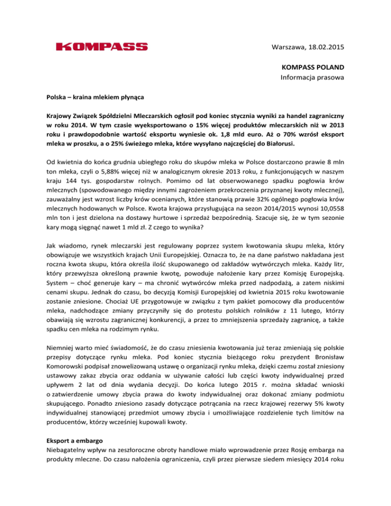 Warszawa, 18.02.2015 KOMPASS POLAND Informacja prasowa