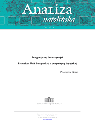 Nie można wy świetlić połączonego obrazu. Plik mógł zostać przeniesiony lub usunięty albo zmieniono jego nazwę. Sprawdź, czy łącze wsk azuje poprawny plik i lok alizację. 1 5(63)2013 Integracja czy dezintegracja? Przyszłość Unii Europejskiej z perspektywy brytyjskiej Przemysław Biskup CENTRUM EUROPEJSKIE NATOLIN ul. Nowoursynowska 84, 02-797 Warszawa tel: 48 22 54 59 800· fax: 48 22 646 12 99 www.natolin.edu.pl 2 Streszczenie W niniejszym artykule poddano analizie program polityki europejskiej Zjednoczonego Królestwa zarysowany w wystąpieniu premiera Davida Camerona z 23 stycznia 2013 roku, }ze szczególnym naciskiem na zapowiedź rozpisania referendum w sprawie brytyjskiego członkostwa w UE, a także szerszy kontekst polityczny powstania programu oraz jego możliwe następstwa w okresie przygotowań do kampanii wyborczej do Izby Gmin w maju 2015 roku. Omówiono treść przemówienia premiera Camerona oraz porównano je z Bruges Speech Margaret Thatcher z 1988 roku. Ponadto dokonano analizy porównawczej programów politycznych i manifestów wyborczych z 2010 roku ogłoszonych przez czołowe brytyjskie partie polityczne: Konserwatywną, Pracy i Liberalno-Demokratyczną oraz programu koalicji rządowej sprawującej władzę od maja 2010 roku. Odniesiono się także do kwestii konkurencji programowej i wyborczej pomiędzy Partią Konserwatywną a Partią Niepodległości Zjednoczonego Królestwa (UKIP) w zakresie polityki europejskiej, a także do postaw wyborców względem UE w poszczególnych częściach Zjednoczonego Królestwa oraz wpływu referendum niepodległościowego w Szkocji na politykę europejską państwa brytyjskiego. Opracowanie prezentuje także diagnozę relacji brytyjsko-unijnych z punktu widzenia politycznych, gospodarczych i militarnych interesów Zjednoczonego Królestwa; brytyjską wizję rozwoju UE oraz miejsca Zjednoczonego Królestwa w zreformowanej Unii, a także znaczenie brytyjskiego referendum w sprawie członkostwa dla procesów politycznych w UE, odnosząc się do kwestii prawdopodobieństwa opuszczenia Unii przez Zjednoczone Królestwo. CENTRUM EUROPEJSKIE NATOLIN ul. Nowoursynowska 84, 02-797 Warszawa tel: 48 22 54 59 800· fax: 48 22 646 12 99 www.natolin.edu.pl 3 WSTĘP Intensyfikująca się w ostatnich latach debata na temat przyszłości Unii Europejskiej oraz miejsca i roli, jaką odgrywać w niej będzie Zjednoczone Królestwo (United Kingdom – UK), weszła obecnie w okres pełen symboliki. Świętujemy bowiem czterdziestolecie pierwszego rozszerzenia Wspólnot Europejskich – wydarzenia, które pomimo swej złożoności i licznych napięć, jakie wywołało, było wyrazem wiary w przyszłość projektu europejskiego, a także niezwykle ważnym krokiem w pogłębianiu procesu integracji. Analizując problem przyszłości Unii Europejskiej z perspektywy brytyjskiej nie sposób również uciec od podsumowań związanych ze śmiercią w kwietniu tego roku Margaret Thatcher, która stała się ikoną relacji brytyjsko-unijnych, zarówno jako „matka chrzestna” projektu jednolitego rynku europejskiego, jak i – ulokowanego w głównym nurcie polityki – sprzeciwu wobec niekontrolowanego pogłębiania integracji europejskiej, zwłaszcza o charakterze politycznym. Z perspektywy ostatnich tygodni pytania o integrację i dezintegrację wyraźnie zyskują na znaczeniu. Przedmiotem niniejszej analizy jest wystąpienie programowe w zakresie polityki europejskiej lidera brytyjskiej Partii Konserwatywnej oraz premiera Zjednoczonego Królestwa Davida Camerona, wygłoszone 23 stycznia 2013 roku w Londynie, a także szerszy kontekst polityczny jego powstania oraz możliwe następstwa w okresie przygotowań do kampanii wyborczej do Izby Gmin w maju 2015 roku. 1. UWARUNKOWANIA HISTORYCZNE BRYTYJSKIEGO UCZESTNICTWA W PROCESIE INTEGRACJI EUROPEJSKIEJ Charakteryzując rolę Zjednoczonego Królestwa w procesie integracji europejskiej, należy podkreślić jego długotrwałe i często kluczowe zaangażowanie, nacechowane jednocześnie dystansem w stosunku do idei integracji ponadnarodowej. Jako jedyne z mocarstw zachodnioeuropejskich nie znalazło się ono w gronie państw-założycieli Wspólnot Europejskich i jako jedyne próbowało budować alternatywną strukturę integracyjną (EFTA). CENTRUM EUROPEJSKIE NATOLIN ul. Nowoursynowska 84, 02-797 Warszawa tel: 48 22 54 59 800· fax: 48 22 646 12 99 www.natolin.edu.pl 4 Bezpośrednio po II wojnie światowej Zjednoczone Królestwo miało status największego mocarstwa kolonialnego, o globalnym zasięgu interesów oraz silnej pozycji międzynarodowej. Z takiej perspektywy geopolitycznej pełne członkostwo w powstałych w latach pięćdziesiątych XX wieku Wspólnotach nie było atrakcyjne ani celowe. Do przewartościowania w brytyjskiej polityce integracyjnej doszło jednak już na początku lat sześćdziesiątych. Wynikało ono z dekolonizacji, pogarszania się pozycji strategicznej Zjednoczonego Królestwa, a także „cudu gospodarczego” EWG. W latach 1963 i 1967 brytyjskie starania o przystąpienie do Wspólnoty zostały dwukrotnie zablokowane przez Francję. Niemniej od samego początku perspektywa brytyjskiego członkostwa we Wspólnotach Europejskich (WE), wywoływała kontrowersje. Poparcie dla akcesji wiązało się przede wszystkim z dominującym wówczas przekonaniem, iż wobec długotrwałego kryzysu gospodarczego należy zacieśnić więzi z najważniejszymi partnerami gospodarczymi. W efekcie, przyjęcie w latach sześćdziesiątych konsekwentnego kursu na przystąpienie do WE wynikało przede wszystkim z determinacji części establishmentu i jednocześnie było otwarcie kontestowane przez część jego członków. Podział na euroentuzjastów i eurosceptyków kształtował się przy tym w poprzek głównych podziałów partyjnych w Wielkiej Brytanii, nie zaś zgodnie z nimi, co pozostaje do dzisiaj źródłem poważnych napięć w relacjach wewnętrznych obu dominujących parti