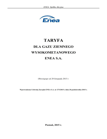 ENEA_Taryfa dla gazu ziemnego_zatwierdzona z nr uchwaly