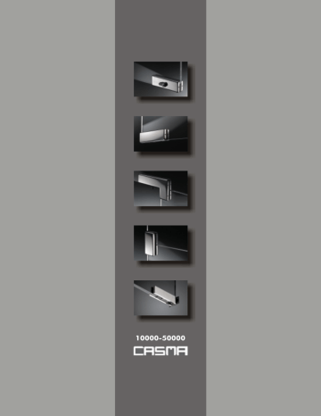 10000-50000 1 2 1 2 3 4 5 3 indice > contents > indice azienda the company empresa 5 a 10000-50000 7 indice numerico serial number list índice numérico 9 1 serrature e loro complementi locks and their accessories cerraduras y complementos 2 cerniere alte e basse top and bottom patch fittings bisagras altas y bajas 29 3 rotazioni pivots rotaciones 35 4 morsetteria clamp fittings uniones 5 applicazioni speciali special items artículos especiales 61 lavorazioni del vetro glass cutouts muescas en el vidrio 67 11 49 installazioni tipo assembly types tipos de instalaciones 83 finiture finishes acabados 87 4 azienda > the company > empresa 5 La Storia Valentino Marinoni, fondatore della Casma, nel 1942 iniziò la progettazione e la produzione di chiudiporta a pavimento nello stabilimento di Magenta. Dopo alcuni anni la Casma ampliò la gamma prodotti diventando la prima azienda nel mondo nella progettazione e produzione di chiudiporta ed accessori per installazioni in vetro temperato. La lunga esperienza maturata nel settore si esprime oggi con oltre 160 brevetti internazionali ed una vasta scelta di oltre 2.600 tipi diversi di accessori per installazioni in vetro temperato. Oggi oltre 150.000 porte all'anno vengono equipaggiate con prodotti CASMA. Dal 1998, dopo l'ottenimento della certificazione UNI ISO 9002, Casma ha dedicato le proprie energie all'ampliamento della gamma prodotti con l'obiettivo di offrire al mercato un pacchetto sempre più completo di sistemi per vetro temperato architettonico: - Porte pieghevoli a libro - Porte scorrevoli e parcheggiabili - Porte scorrevoli - Porte interne - Maniglioni Tubolari - Facciate sospese - Accessori "Design" firmati Giugiaro Tutto questo oggi fa bella mostra di sé nelle costruzioni più moderne in più di 80 paesi dell'Europa, del Medio ed Estremo Oriente, dall’America fino all'Australia e Nuova Zelanda. The Casma Story In 1942 CASMA's founder Valentino Marinoni began designing and manufacturing floor checks in Magenta, Italy. A few years later CASMA extended its product line, becoming the first company worldwide to engineer and manufacture both floor checks and a complete range of hardware for frameless tempered glass door assemblies. CASMA's long experience in this field is expressed in our more than 160 international patents and a vast selection of over 2.600 different fittings for all glass door assemblies. Today, over 150.000 doors are equipped with CASMA products each year. Since the beginning of 1998, after obtaining UNI EN ISO 9002 certification, CASMA has dramatically enlarged its range of products by adding very innovative systems for: - folding tempered glass doors - stacking away tempered glass doors - sliding tempered glass doors - interior office tempered glass doors - a range of Tubular Handles - personalised facades all glass systems - last but not least, a complete range of fittings called GSM, representing an unprecedented mix of leading-edge technology (with components of Carbon Fiber, Titanium, Magnesium) and stunning Italian Design realised by the famous Italian car stylist GIUGIARO Design. All the above are gracing modern buildings and sports facilities in over 80 countries of Europe, the Middle and Far East, from America to Australia and New Zealand. La historia En 1942 Valentino Marinoni fundó CASMA, en principio diseñando y produciendo cierrapuertas de suelo, en Magenta, Italia. Unos cuantos años después CASMA amplió sus líneas de productos convirtiéndose en la primera compañia del mundo en diseñar y manufacturar al mismo tiempo cierrapuertas de suelo y un completo surtido de piezas para el montaje de puertas de cristal templado. La larga experiencia de CASMA en este campo viene expresada en más de 160 patentes internacionales y en una vasta selección de más de 2.600 diferentes piezas para cualquier instalación de puertas de cristal. Hoy en día equipamos cada año más de 150.000 puertas con productos CASMA. Desde el principio de 1998, tras haber obtenido la certificación UNI EN ISO 9002, CASMA ha ampliado considerablemente su gama de productos, añadiendo sistemas muy innovadores para: - puertas a libro de vidrio templado - puertas batientes de vidrio templado - puertas deslizables de vidrio templado - puertas de división interna de vidrio templado - una gama de tiradores tubulares - sistemas personalizados de fachadas de vidrio - y por último, pero no menos importante, una gama completa de herraies llamadas GSM que representa una mezcla muy nueva de tecnología para las hojas (con componentes de Fibras de Carbono, Titanio, Magnesio) y del extraordinario diseño italiano, realizado con el famoso diseñador italiano de automóviles GIUGIARO. Todos los artículos de arriba equipan modernos edificios e instalaciones deportivas en más de 80 países de Europa, Medio y Estremo Oriente, de America hasta Australia y Nueva Zelanda. 6 10000 - 50000 7 10000-50000 10000 - 50000 indica la serie degli accessori che ha come modulo altezza 45 mm. Dimensione cerniera 140x45x30 mm. Le dimensioni contenute, la facilità di montaggio, la semplicità delle lavorazioni del vetro danno a questa serie un elevato indice di gradimento. Le copertine intercambiabili che ne determinano l'aspetto estetico sono disponibili in tutti i materiali: alluminio anodizzato nei vari colori, ottone e acciaio inossidabile satinati o lucidi. In contrasto con le ridotte dimensioni, questa serie è ottimale per installazioni fino a 12 mm di spessore e per porte fino a 100 Kg di peso. La gamma degli articoli comprende inoltre accessori a sbalzo per porte a battuta. 10000-50000 10000-50000 is the series of patch fittings with a 45 mm height. Size of top and bottom fittings: 140x45x30 mm. The compact size, easy assembly and simplicity of glass processing contribute to give this series a high satisfaction rating. The interchangeable covers that create its aesthetic aspect are available in all materials: anodised aluminium in a wide array of col