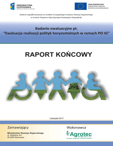 Badanie współfinansowane ze środków Europejskiego Funduszu Rozwoju Regionalnego w ramach Programu Operacyjnego Innowacyjna Gospodarka Badanie ewaluacyjne pt. „Ewaluacja realizacji polityk horyzontalnych w ramach PO IG” Raport końcowy Zamawiający MINISTERSTWO ROZWOJU REGIONALNEGO ul. Wspólna 2/4 00-926 Warszawa Wykonawca Listopad 2011 Ewaluacja realizacji polityk horyzontalnych w ramach PO IG – Raport końcowy -------------------------------------------------------------------------------------------------------------------------------------------- Badanie zrealizowane przez: Agrotec Polska Sp. z o.o. Ul. Dzika 19/23 lokal nr 55 00-172 Warszawa tel.: 22 403-80-26 fax: 22 403-80-25 e-mail: [email protected] Ewaluację realizował Zespół badawczy w składzie: Agnieszka Rudolf – Kierownik Zespołu badawczego Justyna Ratajczak Marta Cichowicz-Major Cezary Przybył Jarosław Chojecki Róża Chybowska Paweł Pijanowski Maria Pacuska Emilia Nasiłowska ----------------------------------------------------------------------------------------------------------------------------------------Agrotec Polska Sp. z o.o. 2 Ewaluacja realizacji polityk horyzontalnych w ramach PO IG – Raport końcowy -------------------------------------------------------------------------------------------------------------------------------------------- Spis treści Wykaz skrótów ........................................................................................................................................ 5 Streszczenie ............................................................................................................................................ 7 Summary ............................................................................................................................................... 15 1. 2. Wprowadzenie .............................................................................................................................. 24 Zastosowana metodologia ............................................................................................................. 26 2.1. 3. Ograniczenia procesu badawczego ..................................................................................... 28 WYNIKI BADANIA ......................................................................................................................... 29 3.1. Ewaluacja realizacji zasady zrównoważonego rozwoju ....................................................... 29 3.2. Ewaluacja realizacji zasady równych szans.......................................................................... 49 3.3. Ewaluacja realizacji zasady partnerstwa ............................................................................. 68 3.3.1. Spójnośd zapisów programowych i wykonawczych PO IG z przepisami europejskimi i krajowymi ............................................................................................................................... 68 3.3.2. Ocena realizacji zasady partnerstwa w procesie konsultacji społecznych ....................... 70 3.3.3. Ocena realizacji zasady partnerstwa w odniesieniu do Komitetu Monitorującego.......... 74 3.3.4. Partnerstwa projektowe w PO IG .................................................................................. 80 3.4. Ewaluacja realizacji pozostałych polityk horyzontalnych ..................................................... 85 3.4.1. Polityka rozwoju lokalnego............................................................................................ 85 3.4.2. Polityka współpracy międzynarodowej .......................................................................... 93 3.4.3. Polityka zatrudnienia................................................................................................... 101 5. Katalog dobrych praktyk .................................................................................................................. 111 6. Propozycje logiki interwencji uwzględniającej przedmiotowe polityki horyzontalne w przyszłej perspektywie finansowej ..................................................................................................................... 117 7. Rekomendacje dla przyszłej perspektywy finansowej ..................................................................... 123 ----------------------------------------------------------------------------------------------------------------------------------------Agrotec Polska Sp. z o.o. 3 Ewaluacja realizacji polityk horyzontalnych w ramach PO IG – Raport końcowy -------------------------------------------------------------------------------------------------------------------------------------------- ----------------------------------------------------------------------------------------------------------------------------------------Agrotec Polska Sp. z o.o. 4 Ewaluacja realizacji polityk horyzontalnych w ramach PO IG – Raport końcowy -------------------------------------------------------------------------------------------------------------------------------------------- Wykaz skrótów BGK Bank Gospodarstwa Krajowego B+R Działalność badawczo-rozwojowa B+RT Badania i rozwój technologiczny CATI Computer Assisted Telephone Interview (Komputerowo Wspierany Wywiad Telefoniczny) CSR Corporate Social Responsibility (Społeczna odpowiedzialność biznesu) EMAS System Ekozarządzania i Audytu EMAS (ang. Eco Management and Audit Scheme) EWT Europejska Współpraca Terytorialna GOW Gospodarka oparta na wiedzy ICT Technologie informacyjne i komunikacyjne (information and communication technologies) IDI Individual In-Depth Interview (Indywidualny Wywiad Pogłębiony) IZ Instytucja Zarządzająca IP Instytucja Pośrednicząca IP2 Instytucja Pośrednicząca 2-giego stopnia (Instytucja Wdrażająca) KM Komitet Monitorujący KOP Komisja Oceny Projektów MRR Ministerstwo Rozwoju Regionalnego MSP Małe i średnie przedsiębiorstwa NPR Narodowy Plan Rozwoju 