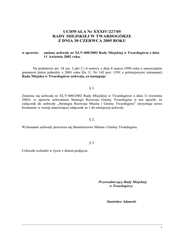 UCHWAŁA Nr XXXIV/227/05 RADY MIEJSKIEJ W