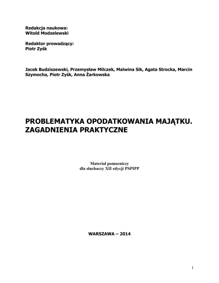 problematyka opodatkowania majątku. zagadnienia praktyczne