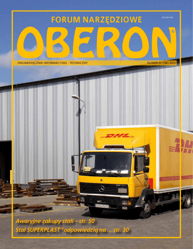 FORUM NARZĘDZIOWE ISSN 1509-426X ® DWUMIESIĘCZNIK INFORMACYJNO - TECHNICZNY Awaryjne zakupy stali - str. 50 Stal SUPERPLAST ®odpowiedzią na ... str. 30 NUMER 01 (58) 2013 NUMER 01 (58) 2013 FORUM NARZĘDZIOWE OBERON F N Szanowni Państwo! Minęła zima, nie doszło jednak do końca świata, zatem będziemy dalej żyć. Już teraz cieszę się na spotkania targowe, wizyty u klientów. Bo drogi znów są przejezdne. Nie musimy się bać, czy uda się dojechać. A jeżeli z powodu dziury koło się urwie? No cóż, koło naprawią, a i dziurę w końcu załatają. Toż premier Tusk odtrąbił zdobycie niesamowitej kasy z mateczki Unii. Konia z rzędem temu, kto wie jak te pieniądze (ponad 100 mld w 7 lat) mają się do naszego narodowego rocznego budżetu. I jakie są nasze wpłaty do macochy Unii. Tak się staram w tych kwotach orientować, bo praca w sektorze prywatnym jest pełna stresów. Może warto pomyśleć o pracy w budżetówce? W naszym województwie w sektorze prywatnym pracuje 526 600 osób, zarabiając średnio 2600 PLN miesięcznie. I z tych kwot mali przedsiębiorcy jeszcze inwestują w rozwój swoich firm. Natomiast w sektorze publicznym, utrzymywanym z podatków płaconych przez sektor prywatny pracuje w kujawsko-pomorskim 156 900 osób, ze średnim wynagrodzeniem 3500 PLN. Ich jedyny kłopot, to jak będzie wyglądała trzynastka i czemu się spóźnia. Nie jestem pewien jak długo da się tę prywaciarską krowę doić, lub tej kurze złote jajka wybierać. Na ile starczy ludziom patriotyzmu, by pracować tu, gdzie leżą kości przodków; gdzie urzędnik przebrany za WYDAWCA DWUMIESIĘCZNIKA ZESPÓŁ REDAKCYJNY Forum Narzędziowe OBERON Robert Dyrda 88 - 100 Inowrocław, ul. Cicha 15 Centrala: 52 35 424 00 Fax. 52 35 424 01 E-mail: [email protected] www.oberon.pl Redaktor Naczelny: mgr inż. Robert Dyrda [email protected] tel. 52 35 424 29 Adres redakcji: 88 - 100 Inowrocław, ul. Cicha 15 Centrala: 52 35 424 00 Fax. 52 35 424 01 Adres korespondencyjny: OBERON Robert Dyrda 88 - 100 Inowrocław ul. Cicha 15 Robin Hooda tworzy kolejne podatki i przepisy, aby zatruć życie innym i by zabrać pracującym i dać urzędującym. Statystyki mówią, że jest nas w Polsce coraz mniej. Nie tylko dlatego, że rodzi się mniej dzieci, ale ponieważ ludzie emigrują na potęgę: wg „Gazety Pomorskiej” 80% respondentów przyznaje się, że ktoś z ich rodziny wyjechał „za chlebem”. Jak domyślam, się na pewno nie chory, i nie emeryt. Mam dzieci generalnie w wieku szkolnym, więc są w domu, ale z siedmiorga kuzynów, tylko jeden został w kraju, reszta mieszka (tymczasowo?) za granicą. I wszystko są to ludzie między 20 a 40 rokiem życia. Ciekaw jestem jaki jest pomysł naszego rządu na rozwiązanie sytuacji demograficznej poza promowaniem związków homoseksualnych (nota bene związków „martwych”, bo bezpłodnych). Mam wrażenie, jakby jakiś tajemniczy wróg chciał bezkrwawo rozwiązać problem Polski i Polaków. Rozwiązać na zasadzie: uciekną lub sami wymrą. Obecny rząd wcale nie broni polskiej racji stanu, tak ja ją rozumiem. I nie pomaga mi świadomość, że ja na tych ludzi nie głosowałem. Wracając do początku mojej myśli, skoro rząd nie dba o nasze zdrowie, o naszą oświatę (patrz zmniejszanie godzin lekcji historii Polski), o to czy potencjalni pracownicy nie wyemigrują, czy nie wyemigrują ludzie w sile wieku tzw. produkcyjnym, to i raczej nigdy nie będą dbali o nasze przedsiębiorstwa. Bo i po co. Mamy się lepiej poczuć? Nie - mamy opuścić ten kraj żyznych ziem, bo koloniści przyjadą i tu zamieszkają. Może czarnowidztwo, ale mam wrażenie, że coraz mniej polskich firm jest na rynku, a coraz więcej powstaje zagranicznych filii firm, zatrudniających naszych rodaków za minimum socjalne. No tak, o polityce i przyszłości można prawie bez końca, i to raczej pesymistycznie. Podsumowując - nie możemy dać się pokonać, tylko robić swoje najlepiej jak umiemy. Zapraszam do lektury Forum Narzędziowego i do spotkania z Oberonem na kolejnych wiosennych targach w Kielcach – STOM-ie i PLASTPOL-u. Jak wiosna to wiadomo - tylko w świętokrzyskim ;-) Sekretarz redakcji: Edyta Lewicka [email protected] tel. 52 35 424 25 kom. 0693 703 030 Skład i opracowanie graficzne: Edyta Lewicka Druk: LEGRO Sp. z o.o. 88-100 Sławęcinek Nakład: 2500 egzemplarzy Redakcja nie odpowiada za treść artykułów sponsorowanych oraz ogłoszeń. www.forumnarzedziowe.pl Redaktorzy działowi: Marek Adelski - NSK Nakanishi mgr inż. Robert Dyrda - System 3R Dawid Hulisz - specjalista ds. grafitu mgr inż. Jan Dyrda 3 FORUM NARZĘDZIOWE OBERON F NUMER 01 (58) 2013 N Krótko KONIEC Z KRADZIEŻĄ METALI? Nie tylko naszym rodzimym problemem są kradzieże stalowych czy miedzianych elementów i oddawanie ich na złom. Miedziane rynny czy pokrywy studzienek kanalizacyjnych giną jak Polska długa i szeroka. Jest to też plaga w Europie. Znajoma jadąc pociągiem z Monachium do Poznania miała kilkugodzinny postój w Niemczech, bo ktoś ukradł trakcję elektryczną. Na szczęście komentarze w pociągu nie wskazywały na wiązanie ze sprawą naszych rodaków, tylko inne nacje. Z ciekawością zatem przeczytałem w ETMM o nowych regulacjach prawnych na Wyspach. Otóż w Anglii i Walii nie wolno dokonywać transakcji gotówkowych powiązanych z obrotem złomem. Czyżby każdy ze zbieraczy złomu musiał prócz starego wózka czy roweru do przewozu zdobyczy mieć konto w banku? Ale skoro kiedy u nas oddaję makulaturę, to muszę podać dane z dowodu osobistego? Z każdym uszczelnieniem procedury udałoby się pewnie ograniczyć jeszcze bardziej drobne kradzieże elementów metalowych, które nagle, po połamaniu czy odpiłowaniu stają się złomem. We wspomnianym artykule oszacowano kradzieże w Anglii i Walii na 15 tys. ton rocznie. Nie wiem ile jest tych kradzieży wagowo w Polsce, ale ostatnio opisywane wyłudzenia VAT przy transakcjach stalą sięg