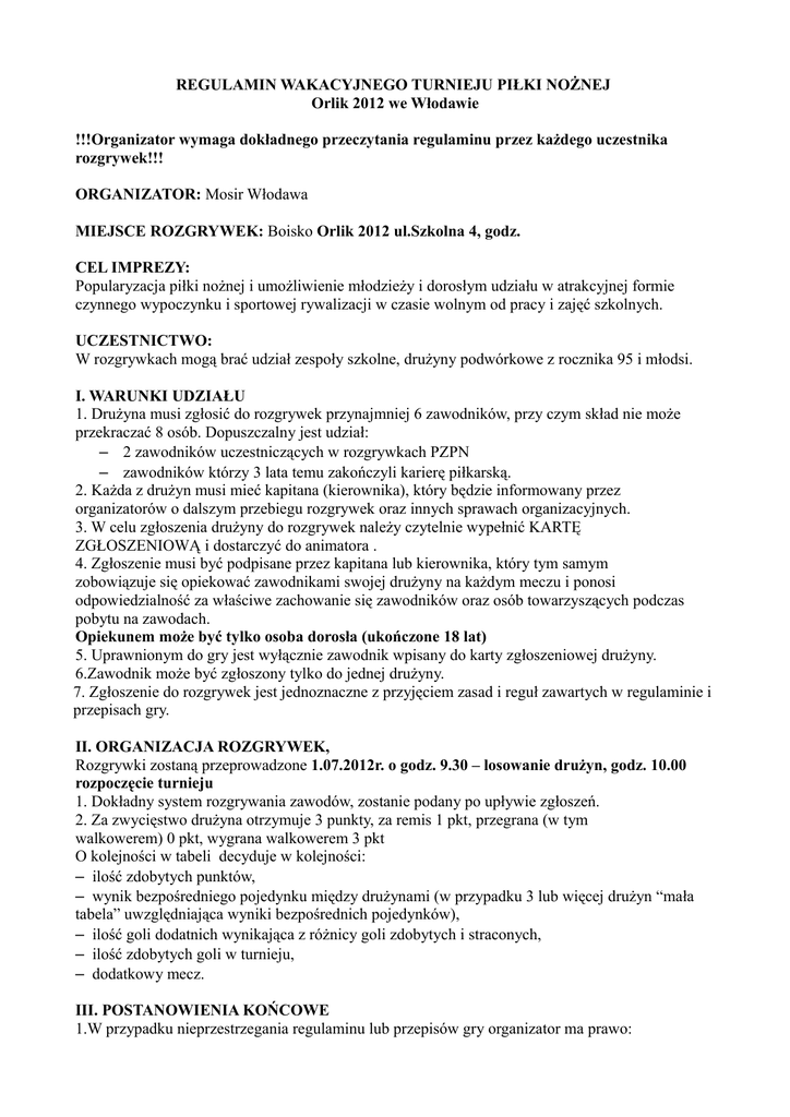 REGULAMIN WAKACYJNEGO TURNIEJU PIŁKI NOŻNEJ Orlik