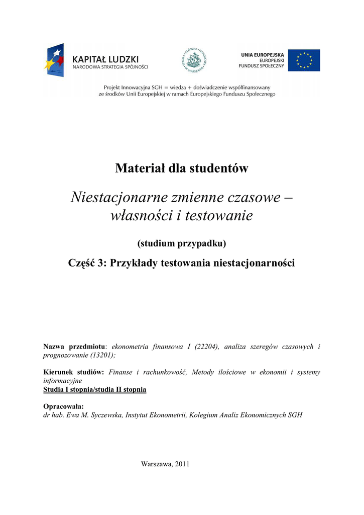 Niestacjonarne zmienne czasowe – własności i testowanie - E-SGH