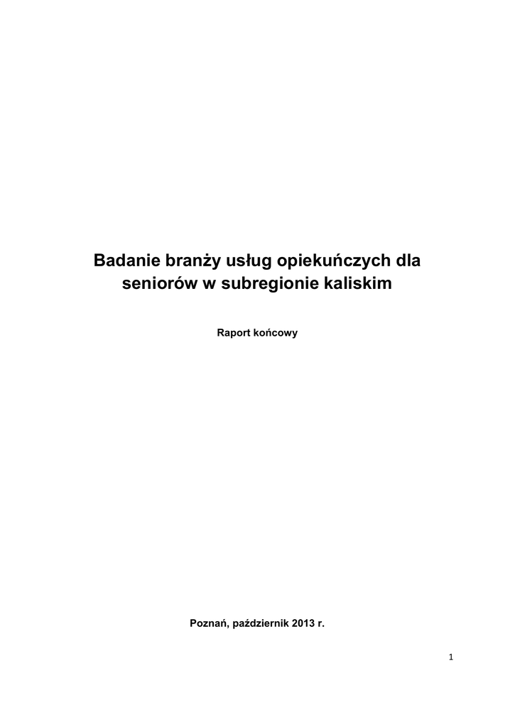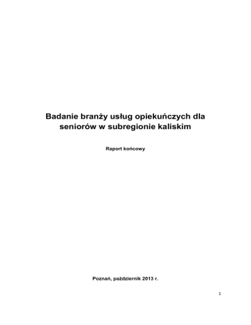 Badanie branży usług opiekuńczych dla seniorów w subregionie kaliskim Raport końcowy Poznań, październik 2013 r. 1 Spis treści 1. Streszczenie ........................................................................................................ 3 2. Cele i metodologia badań .................................................................................... 9 2.1 Cele główne i szczegółowe ............................................................................... 9 2.2 Metodologia badań ............................................................................................ 9 3. Usługi opiekuńcze dla seniorów ......................................................................... 11 3.1 Rodzaje usług opiekuńczych dla seniorów ...................................................... 11 3.2 Postawy Polaków wobec opieki nad osobami starszymi ................................. 12 3.3 Potencjał rynku usług opiekuńczych dla seniorów........................................... 17 4. Analiza usług opiekuńczych realizowanych przez ośrodki pomocy społecznej w subregionie kaliskim ................................................................................................. 19 5. Analiza internetowych ofert pracy dla opiekunów/opiekunek osób starszych .... 22 6. Analiza indywidualnych wywiadów pogłębionych z seniorami i członkami ich rodzin z subregionu kaliskiego .................................................................................. 27 7. Analiza sposobów marketingowego komunikowania usług opiekuńczych dla osób starszych .................................................................................................................. 46 8. Rekomendacje ................................................................................................... 53 9. Aneksy ............................................................................................................... 56 9.1. Scenariusz rozmowy z osobami starszymi .................................................. 56 9.2. Scenariusz rozmowy z opiekunami osób starszych ..................................... 59 9.3. Transkrypcje indywidualnych wywiadów pogłębionych .................................. 63 2 1. Streszczenie Prezentowany tutaj raport zawiera wyniki badań rynku usług opiekuńczych dla seniorów w subregionie kaliskim. Celem badania była weryfikacja możliwości wejścia na rynek subregionalny kolejnych spółdzielni socjalnych zajmujących się usługami opiekuńczymi dla osób starszych na terenie podregionu kaliskiego. Ważnym celem było także pogłębienie wiedzy na temat funkcjonowania tej branży w subregionie po to, by umożliwić poszerzenie działalności już istniejących spółdzielni socjalnych. Poszukiwano odpowiedzi na pytania o możliwości pozyskania kolejnych zleceń z miejskich i gminnych ośrodków pomocy społecznej w regionie (w gminach, które ogłaszają przetargi na wykonywanie tego typu usług), szanse i bariery rozwoju prywatnych usług opiekuńczych oraz poszerzania ich o dodatkowe czynności związane ze sprzątaniem i porządkami. Odpowiedź na tak postawione pytania umożliwiły badania składające się z pięciu części. Po pierwsze, przeprowadzono analizę desk research, gromadząc dostępną wiedzę dotyczącą rynku usług opiekuńczych ze statystyk publicznych i komercyjnych raportów. Po drugie, zebrano w formie bazy danych wykaz wszystkich 50 gminnych i miejskich ośrodków pomocy społecznej w subregionie kaliskim. Oprócz adresów, numerów telefonu i adresów poczty e-mailowej do poszczególnych ośrodków zawarto również informacje o tym w jaki sposób gmina realizuje usługi opiekuńcze, ile osób (i przez ile godzin rocznie) w 2013 roku było objętych niespecjalistycznymi usługami opiekuńczymi oraz jaka jest aktualna w 2014 roku pełna stawka za godzinę tego typu usług. Po trzecie, przeprowadzono analizę ofert pracy dla opiekunów osób starszych zamieszczanych na najpopularniejszych ogłoszeniowych portalach internetowych – ogólnopolskich (tablica.pl, gumtree.pl) i lokalnych (calisia.pl, kalisz.info.pl). Zwracano uwagę na proponowane stawki godzinowe, warunki pracy, wymagane kwalifikacje i doświadczenie oraz opisywaną sytuację zdrowotną seniora. Po czwarte, w subregionie kaliskim przeprowadzono 7 wywiadów pogłębionych (IDI) z seniorami oraz członkami rodzin opiekującymi się starszymi rodzicami czy dziadkami. W ramach wywiadów diagnozowano na czym polega opieka nad osobami starszymi, jakie obszary obowiązków stanowią obciążenie, które mogłoby zostać przekazane komuś innemu, jakie czynniki utrudniają podjęcie decyzji o wynajęciu opiekunki i jakie kryteria są stosowane przy ocenie ofert opiekunów. Po piąte wreszcie, przeanalizowano sposób komunikacji marketingowej usług opiekuńczych dla seniorów biorąc pod uwagę trzy strony internetowe dużych i renomowanych firm. Ważne było tu określenie sposobu, w jaki firmy podkreślają przewagę konkurencyjną nad indywidualnymi opiekunami i tego jaką politykę cenową stosują. Rezultatem przeprowadzonych badań jest niniejszy raport oraz baza danych gromadząca informacje o sposobie realizowania niespecjalistycznych usług opiekuńczych w poszczególnych gminach subregionu kaliskiego. 3 Najważniejsze wnioski płynące z przeprowadzonych badań: Zgodnie z ustawą o pomocy społecznej (Dz. U. z 2013 poz. 182, z późn.zm.), gminy mają obowiązek zapewniać niespecjalistyczne usługi opiekuńcze w miejscu zamieszkania osobom niesamodzielnym. Dla osób starszych i chorych przeznaczony jest także szereg innych usług realizowanych przez instytucje publiczne, jak i firmy i osoby prywatne. Planowana reforma systemu opieki i wprowadzenie tzw. bonu opiekuńczego mogłaby spowodować duże zmiany w tym zakresie. Ogólnopolskie badania pokazują, że ok. 11% dorosłych Polaków deklaruje pewne problemy związane z codziennym funkcjonowaniem a