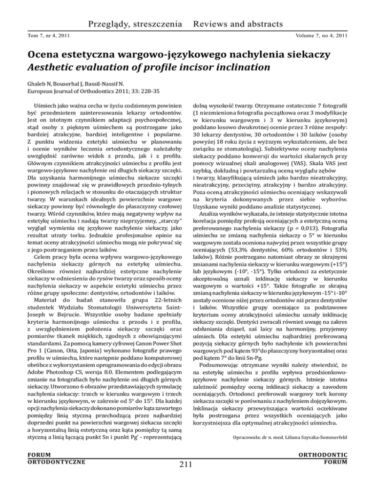 Ocena estetyczna wargowo-językowego nachylenia siekaczy Aesthetic