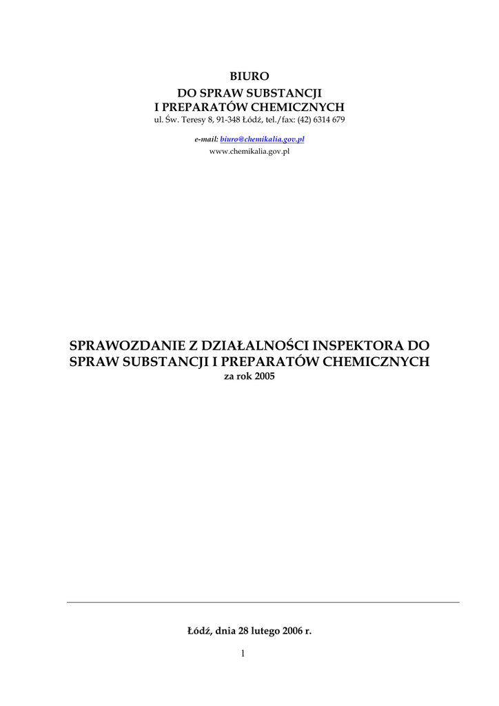 Sprawozdanie za rok 2005 - Biuro do Spraw Substancji Chemicznych