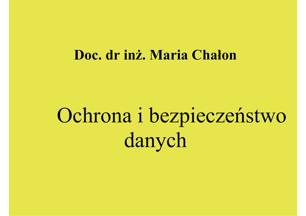 Doc. dr inż. Maria Chałon