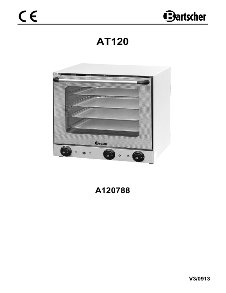 AT120 A120788 V3/0913 PL POLSKI Tłumaczenie oryginalnej instrukcji obsługi Przed rozpoczęciem użytkowania należy przeczytać instrukcję obsługi, a następnie przechowywać ją w dostępnym miejscu! 1. Informacje ogólne ................................................................................................. 202 1.1 Informacje dotyczące instrukcji obsługi ............................................................. 202 1.2 Wyjaśnienie symboli .......................................................................................... 202 1.3 Odpowiedzialność i gwarancja .......................................................................... 203 1.4 Ochrona praw autorskich .................................................................................. 203 1.5 Deklaracja zgodności ........................................................................................ 203 2. Bezpieczeństwo .................................................................................................... 204 2.1 Informacje ogólne .............................................................................................. 204 2.2 Wskazówki bezpieczeństwa dla użytkowania urządzenia ................................. 204 2.3 Użytkowanie zgodnie z przeznaczeniem........................................................... 205 3. Transport, opakowanie i magazynowanie........................................................... 206 3.1 Kontrola dostawy ............................................................................................... 206 3.2 Opakowanie ...................................................................................................... 206 3.3 Magazynowanie ................................................................................................ 206 4. Parametry techniczne ........................................................................................... 207 4.1 Zestawienie podzespołów urządzenia ............................................................... 207 4.2 Dane techniczne................................................................................................ 208 5. Instalacja i obsługa ............................................................................................... 208 5.1 Wskazówki dotyczące bezpieczeństwa ............................................................. 208 5.2 Wskazówki dla instalatora ................................................................................. 209 5.2.1 Ustawienie ............................................................................................... 209 5.2.2 Podłączenie ............................................................................................. 210 5.3 Wskazówki dla użytkownika .............................................................................. 211 5.3.1 Przygotowanie urządzenia ...................................................................... 211 5.3.2 Zmienne parametry w przypadku zapiekania/pieczenia .......................... 211 5.3.3 Stosowanie form do pieczenia/rusztu do grillowania ............................... 212 5.3.4 Zasada procesu zapiekania/pieczenia..................................................... 213 5.4 Sposoby zapiekania .......................................................................................... 215 6. Czyszczenie i konserwacja ................................................................................... 218 6.1 Wskazówki dotyczące bezpieczeństwa ............................................................. 218 6.2 Czyszczenie ...................................................................................................... 218 6.3 Wskazówki bezpieczeństwa dotyczące konserwacji ......................................... 218 7. Możliwe usterki...................................................................................................... 219 8. Utylizacja................................................................................................................ 220 Bartscher GmbH Franz-Kleine-Straße 28 D-33154 Salzkotten Niemcy Tel.: +49 (0) 5258 971-0 Faks: +49 (0) 5258 971-120 - 201 - 1. Informacje ogólne 1.1 Informacje dotyczące instrukcji obsługi Niniejsza instrukcja obsługi zawiera opis instalacji urządzenia, jego obsługi oraz konserwacji i służy jako ważne źródło informacji oraz poradnik. Znajomość i przestrzeganie wszystkich zawartych w niej wskazówek dotyczących bezpieczeństwa i obsługi stanowi warunek bezpiecznej i prawidłowej pracy z urządzeniem. Ponadto należy przestrzegać lokalnych przepisów dotyczących zapobiegania wypadkom oraz zasad BHP. Instrukcja obsługi stanowi integralny element urządzenia i należy ją przechowywać w pobliżu urządzenia, aby osoby instalujące urządzenie, prowadzące prace konserwacyjne i obsługujące lub czyszczące urządzenie miały do niej stały dostęp. 1.2 Wyjaśnienie symboli Ważne wskazówki dotyczące bezpieczeństwa oraz kwestii technicznych oznaczono w niniejszej instrukcji obsługi odpowiednimi symbolami. Wskazówek tych należy bezwzględnie przestrzegać, aby uniknąć ewentualnych wypadków, uszczerbku na życiu i zdrowiu osób oraz szkód rzeczowych. UWAGA! Symbol ten oznacza zagrożenia mogące prowadzić do powstania obrażeń ciała. Należy bezwzględnie i skrupulatnie przestrzegać niniejszych wskazówek BHP, a w odpowiednich sytuacjach zachować szczególną ostrożność. NIEBEZPIECZEŃSTWO! Zagrożenie prądem elektrycznym! Symbol ten zwraca uwagę na zagrożenia prądem elektrycznym. Ignorowanie wskazówek dotyczących bezpieczeństwa stwarza niebezpieczeństwo odniesienia obrażeń ciała lub utraty życia. OSTRZEŻENIE! Tym symbolem oznaczono wskazówki, których ignorowanie może, w konsekwencji, doprowadzić do uszkodzenia urządzenia, jego nieprawidłowego działania lub / i awarii. WSKAZÓWKA! Ten symbol wskazuje na porady oraz informacje istotne